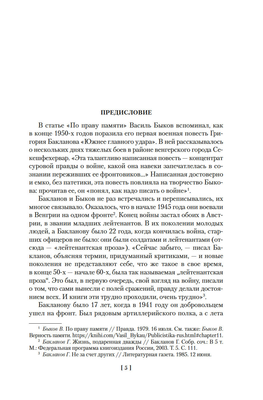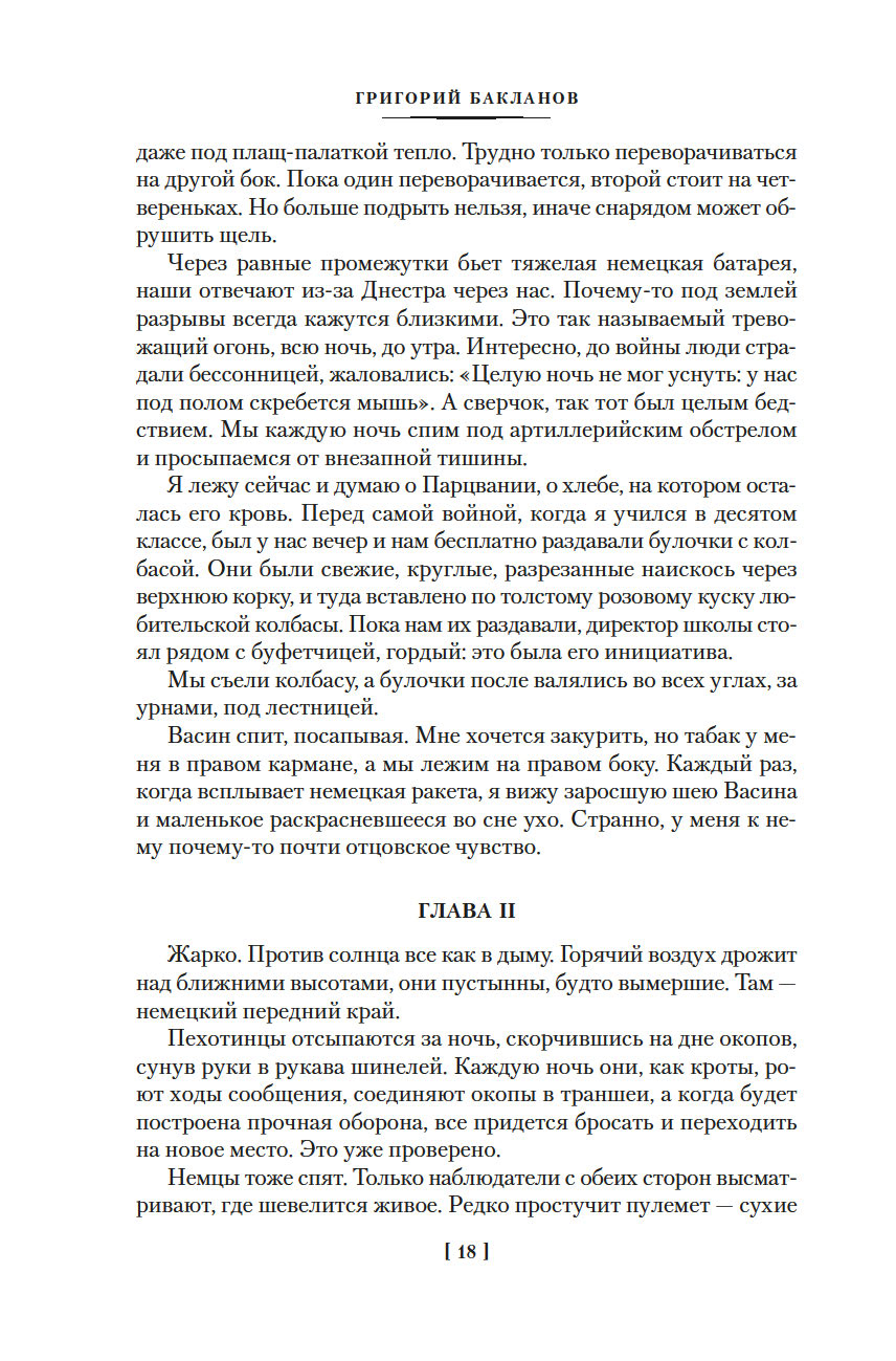 Григорий Бакланов – советский писатель, сценарист и публицист, фронтовик, один из ярких представителей "лейтенантской прозы", среди которых Виктор Астафьев, Юрий Бондарев, Василь Быков, Борис Васильев, Виктор Некрасов... В 1941 году, когда Бакланову было 17 лет, он добровольцем ушел на фронт, участвовал в боях на Украине, в Молдавии, Румынии и Венгрии; конец войны застал его в Австрии, в звании младшего лейтенанта. Достоверные эпизоды войны, отраженные в произведениях Бакланова, часто шли вразрез с парадной историей, но несли правду, которую автор хотел рассказать о том, что видел и пережил.