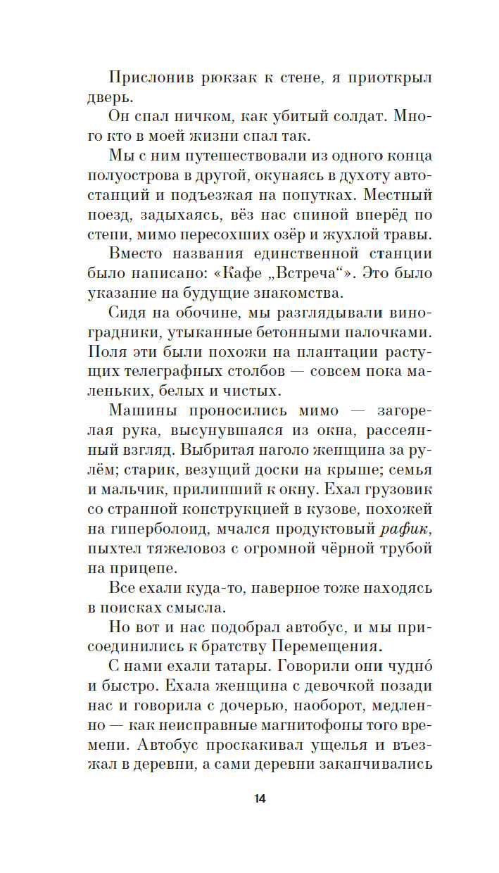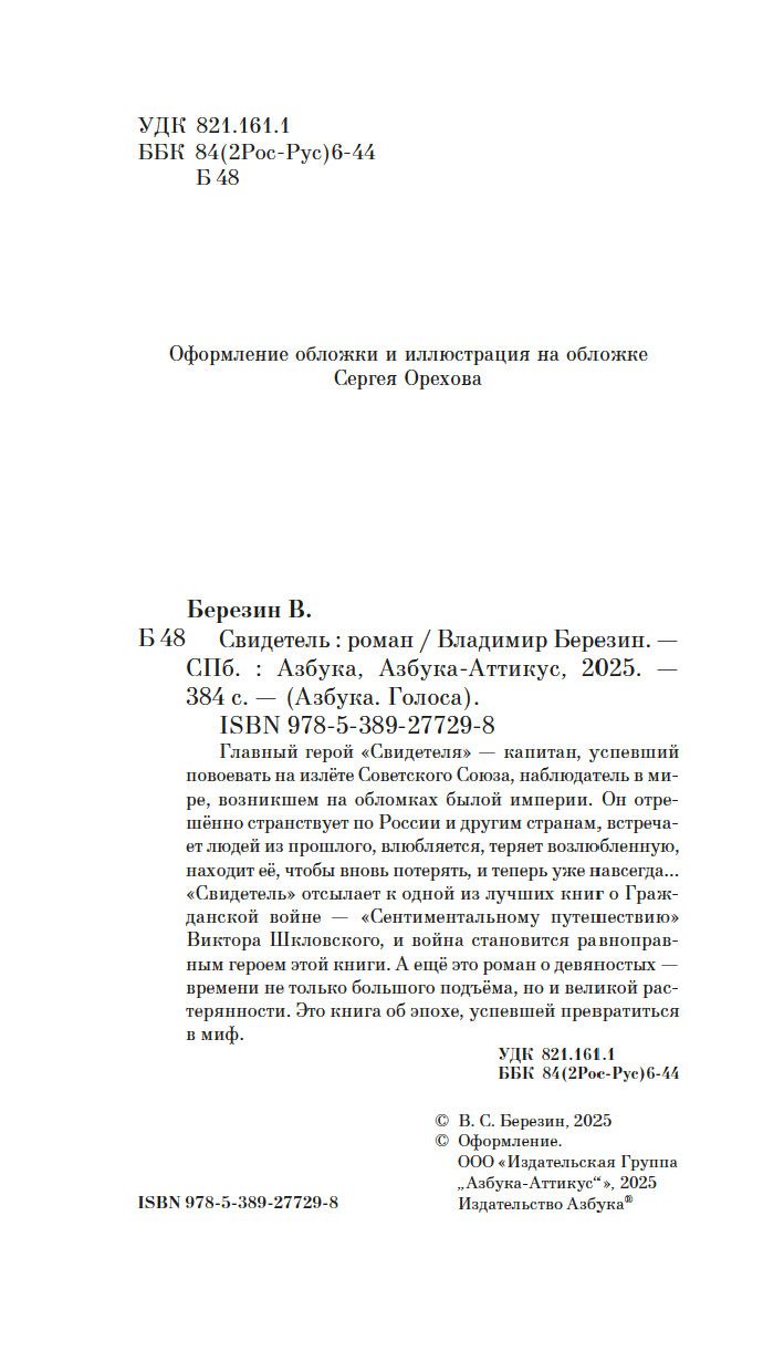 Главный герой "Свидетеля" – капитан, успевший повоевать на излёте Советского Союза, наблюдатель в мире, возникшем на обломках былой империи. Он отрешённо странствует по России и другим странам, встречает людей из прошлого, влюбляется, теряет возлюбленную, находит её, чтобы вновь потерять, и теперь уже навсегда... "Свидетель" отсылает к одной из лучших книг о Гражданской войне – "Сентиментальному путешествию" Виктора Шкловского, и война становится равноправным героем этой книги. А ещё это роман о девяностых – времени не только большого подъёма, но и великой растерянности. Это книга об эпохе, успевшей превратиться в миф.