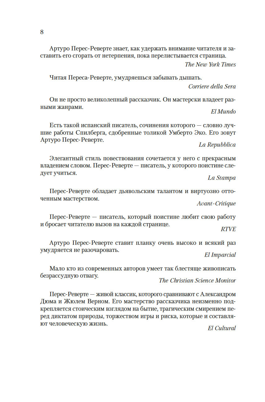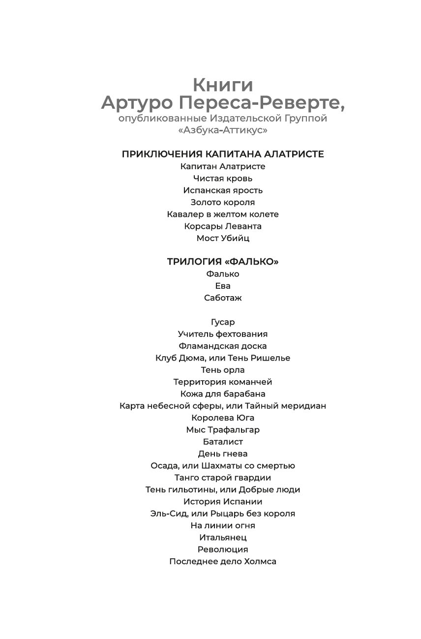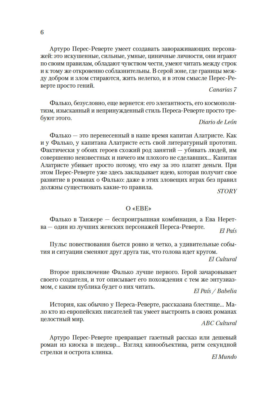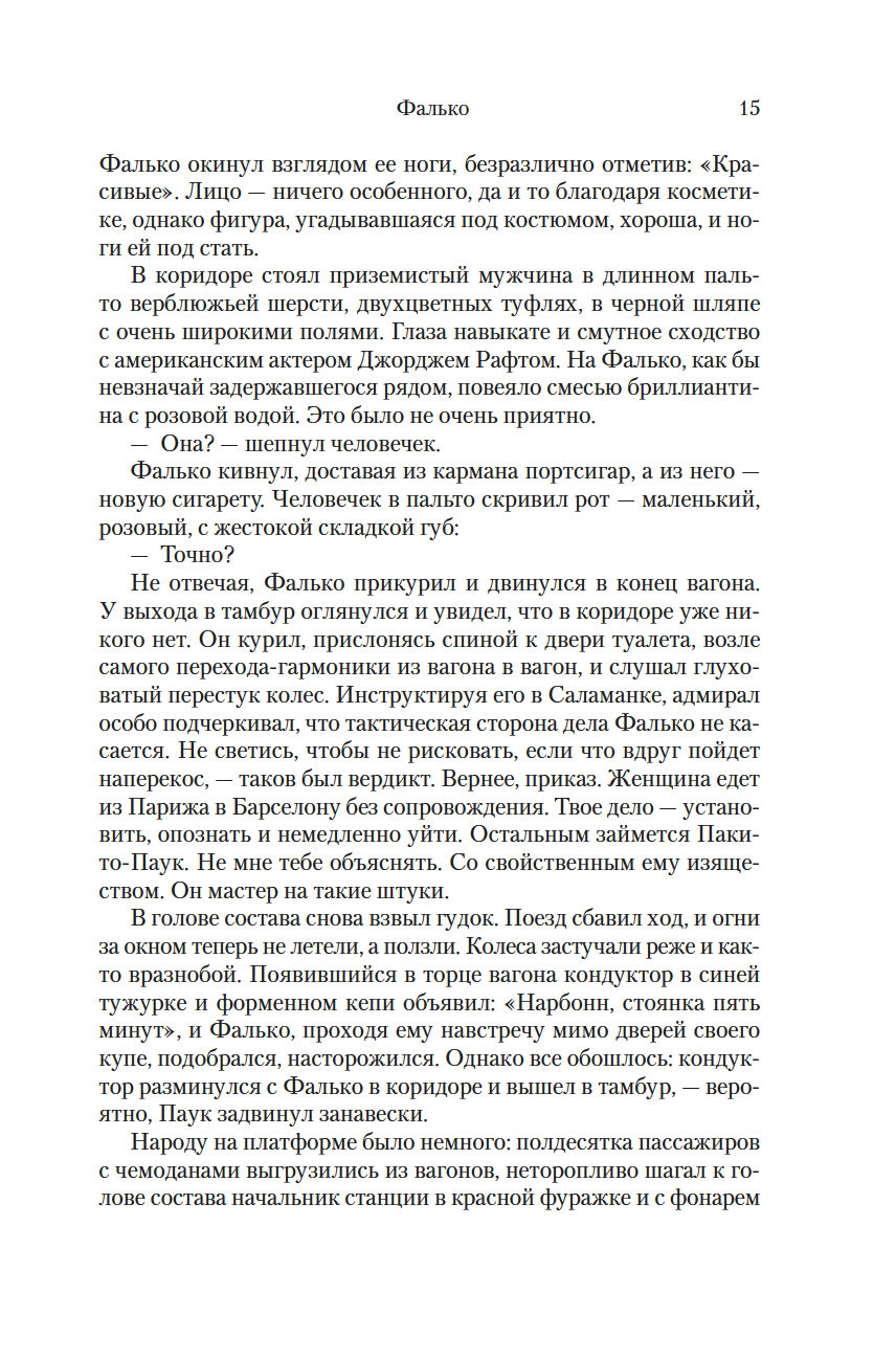 Артуро Перес-Реверте – бывший военный журналист, прославленный автор блестящих исторических, военных, приключенческих, детективных романов, переведенных на сорок языков, обладатель престижнейших литературных наград. Его романы о Фалько – остросюжетные шпионские триллеры и одновременно пародия на них, постмодернистская игра с канонами жанра. Фалько – капитан Алатристе три столетия спустя, Джеймс Бонд в условиях отнюдь не холодной войны, уважительный полупоклон Сомерсету Моэму и Джону Ле Карре.