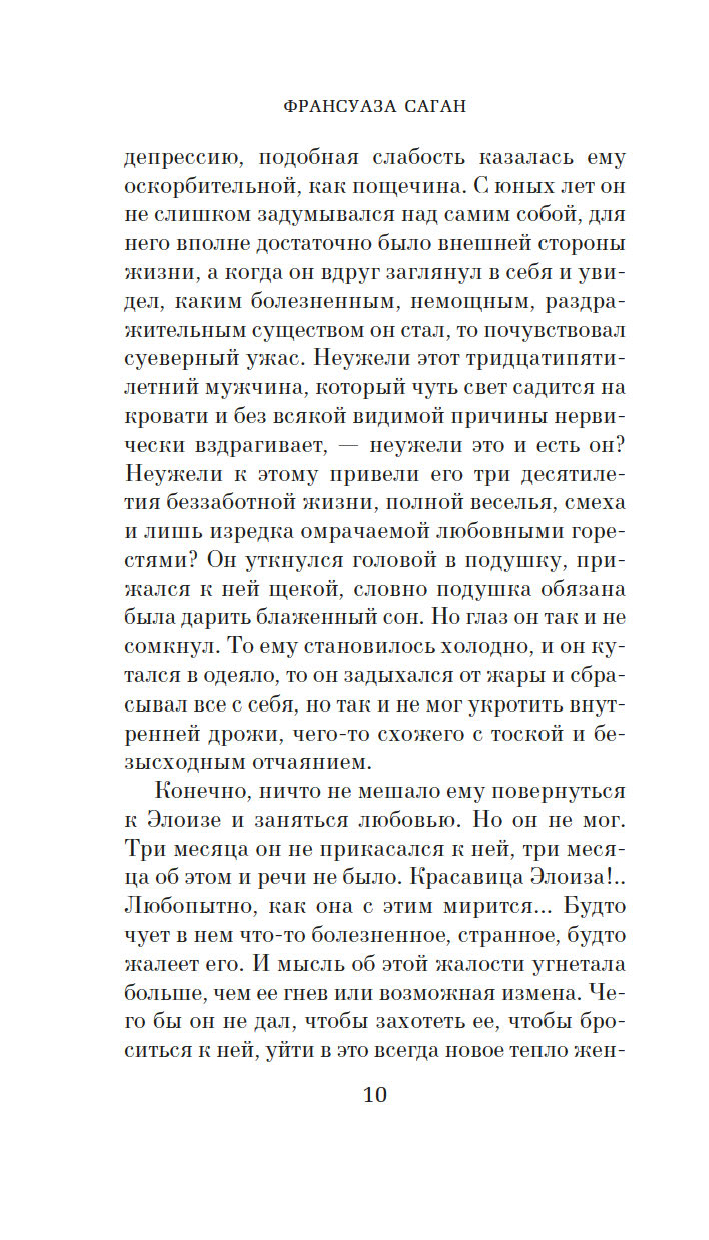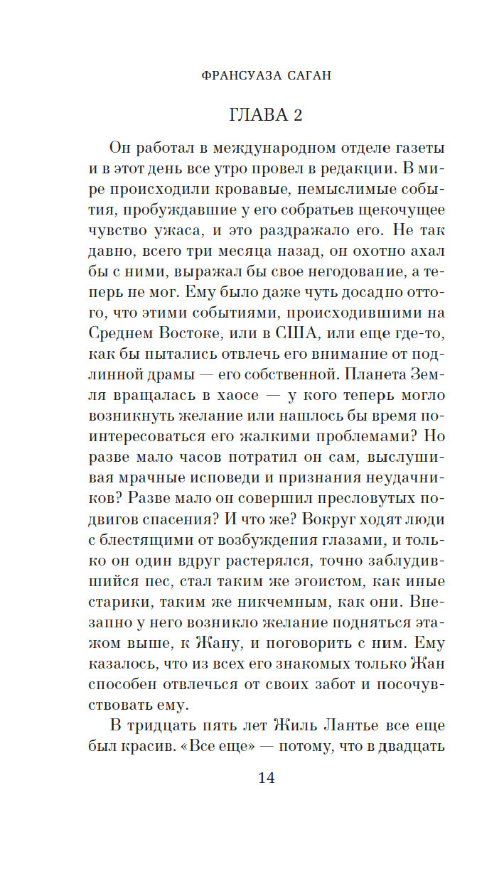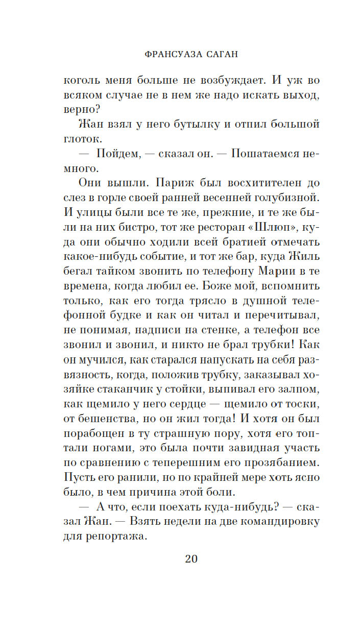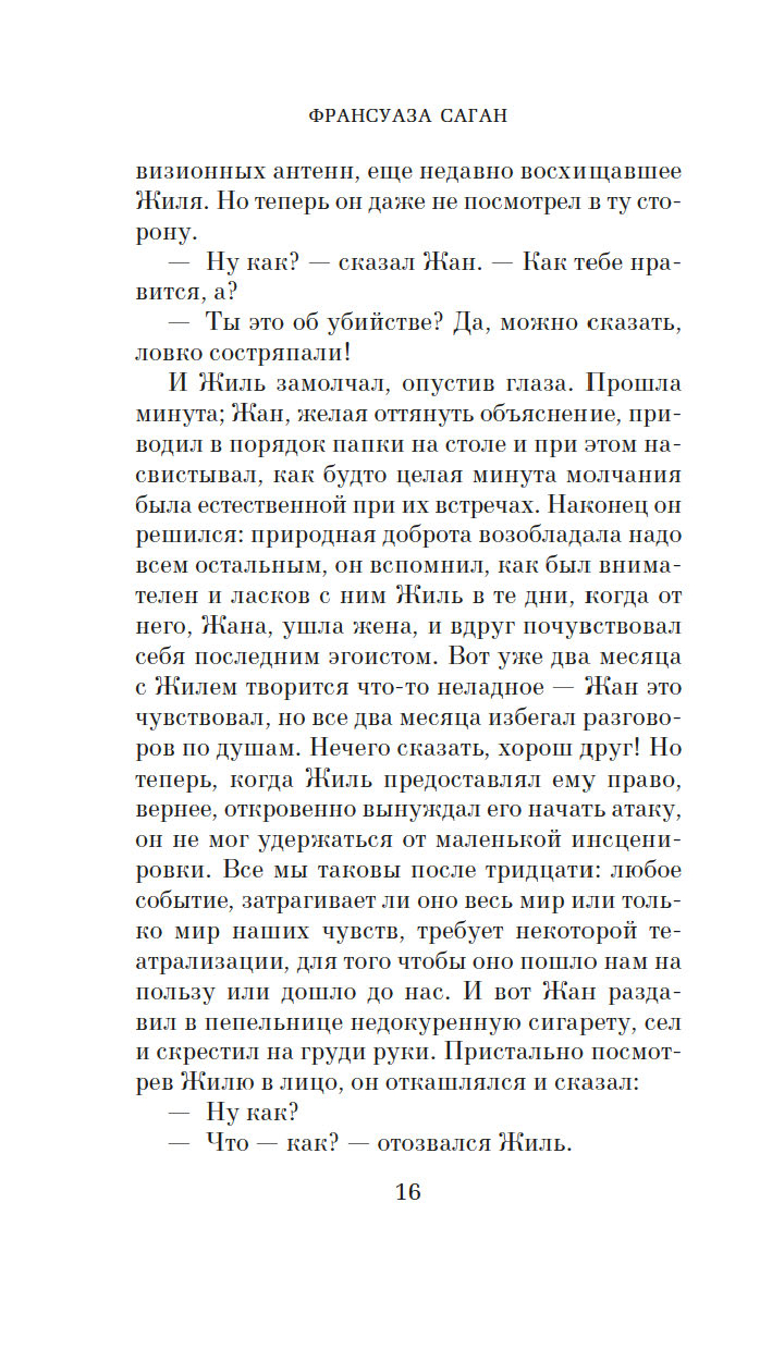 Франсуаза Саган – странная звезда французской литературы, неизменно современный классик вне любой современности. Свои истории о любви в пустоте, где событий в мире нет, но всегда есть приятное времяпрепровождение, она писала под влиянием экзистенциализма Жан-Поля Сартра. Ее рассказы явно вдохновлены Мопассаном. Отчасти она – литературная сестра Сэлинджера, творческий предок Салли Руни: микроскопические движения души всегда интересовали и ее саму, и ее героев гораздо больше, чем любые внешние события и личные поступки. И при этом в реальной жизни Саган находилось место и скандалам в светской хронике, и азартным играм, и бурной любви, и очень объемной реальности – например, парижским событиям 1968 года. Она жила как заблагорассудится в мире, где женщине все еще предназначалась скучная, узкая, подчиненная роль "украшения", и все ее героини исподволь или открыто бунтуют против такого кастинга: притворно играя по правилам, порой чрезмерно увлекаясь и даже начиная искренне верить в собственную игру, они подрывают навязанные законы уже тем, что постоянно очень ясно их осознают.