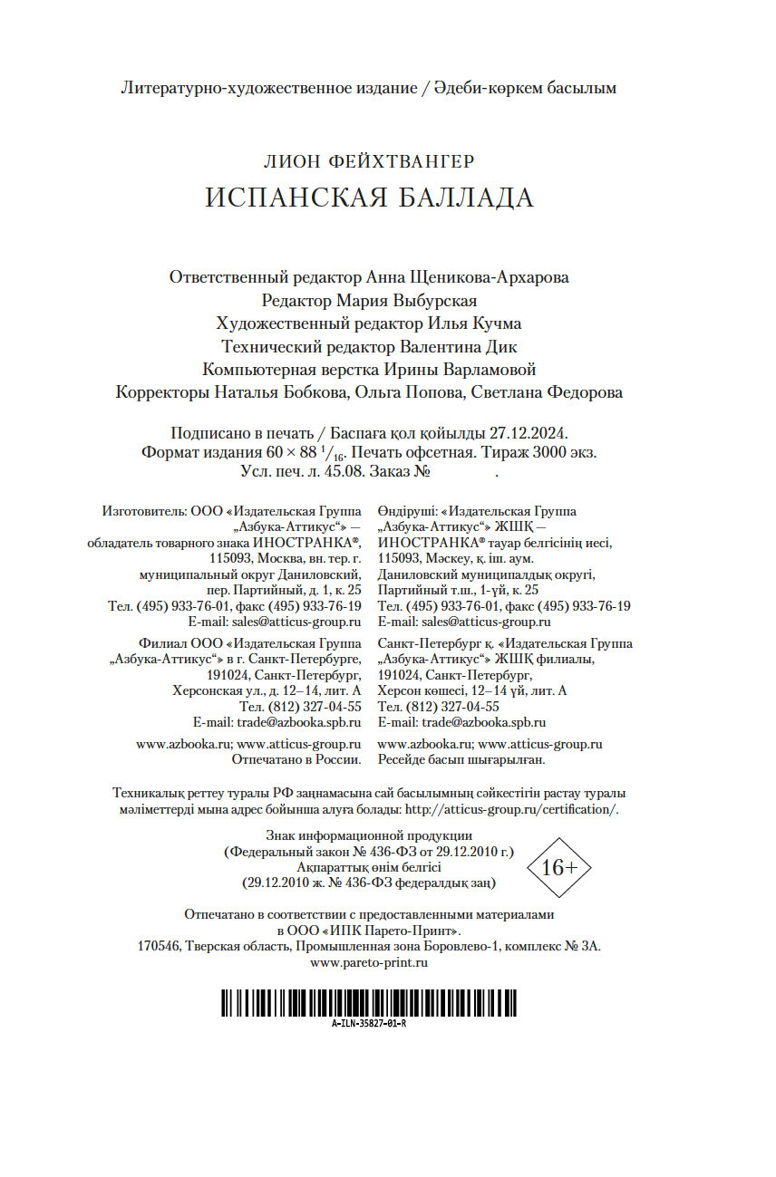 | Изготовитель | ООО "Издательство "Иностранка". 109017, РФ, г. Москва, ул. Пятницкая, 41 |