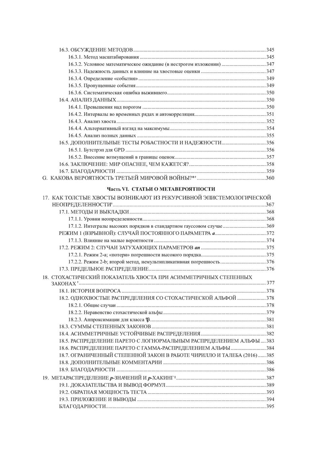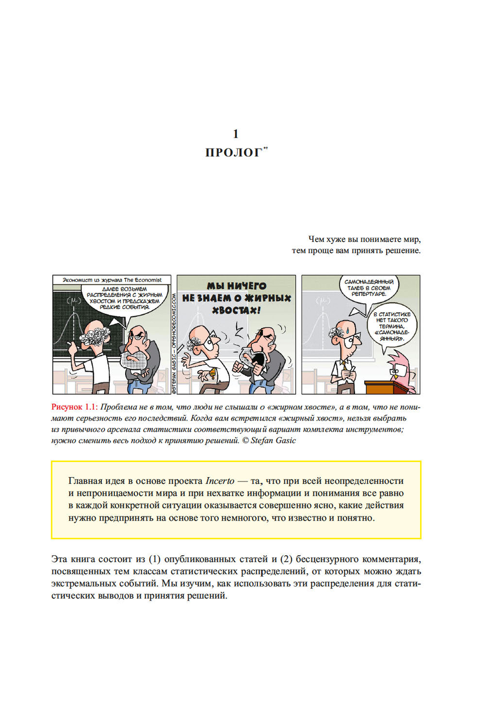 Если вы не дружите с графиками и формулами, то из этой книги почерпнете информацию только про скандалы и разоблачение горе-ученых. Если вы учили математическую статистику, эта книга поможет вам переучиться. Если вы студент или ученый, эта книга – бесценный мастер-класс. Впервые под одной обложкой собраны исследовательские статьи Талеба и его учеников, где в неповторимом талебовском стиле живо и ярко прослеживается ход мысли прикладного математика, сталкивающегося с жизненной задачей, не зная, можно ли ее решить аналитически, с чего начать, за что хвататься, – но настроенного пустить в ход, если понадобится, весь арсенал классической и современной математики и всю мощь компьютеров. Автор и его последователи щедро делятся с читателем своими ранними догадками, интуицией и аналогиями, которые помогли им в итоге найти решение.