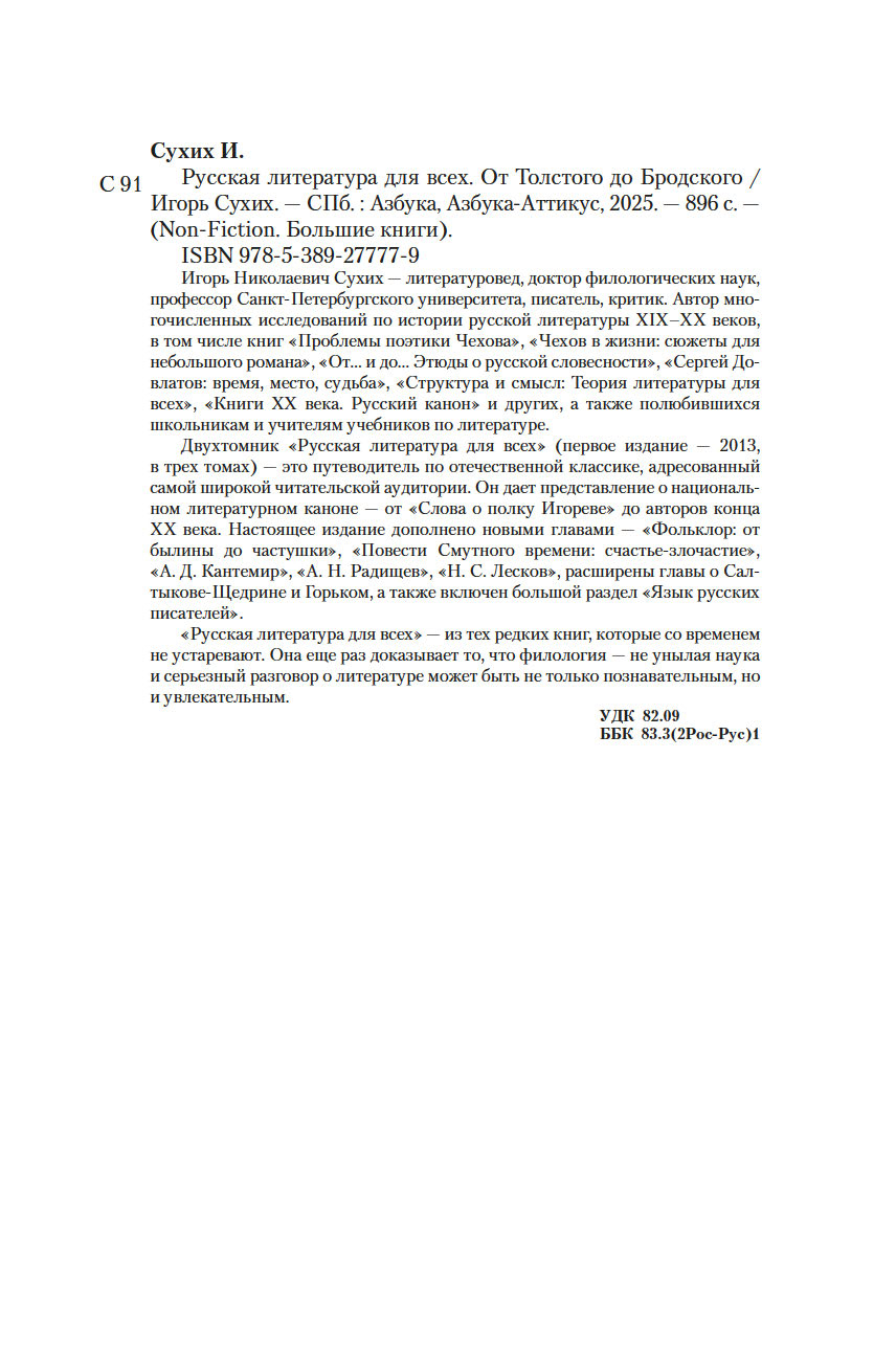 Игорь Николаевич Сухих – литературовед, доктор филологических наук, профессор Санкт-Петербургского университета, писатель, критик. Автор многочисленных исследований по истории русской литературы XIX-XX веков, в том числе книг "Проблемы поэтики Чехова", "Чехов в жизни: сюжеты для небольшого романа", "От... и до... Этюды о русской словесности", "Сергей Довлатов: время, место, судьба", "Структура и смысл: Теория литературы для всех", "Книги ХХ века. Русский канон" и других, а также полюбившихся школьникам и учителям учебников по литературе.
