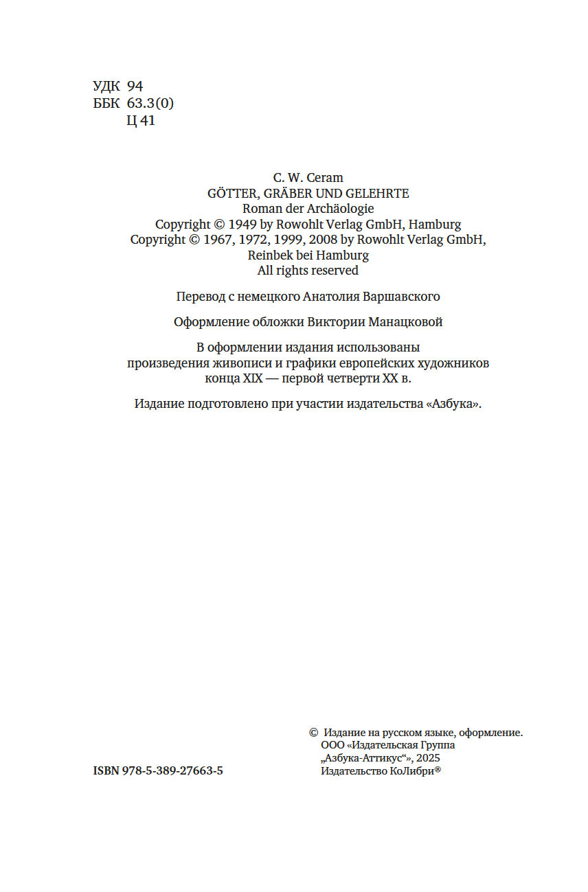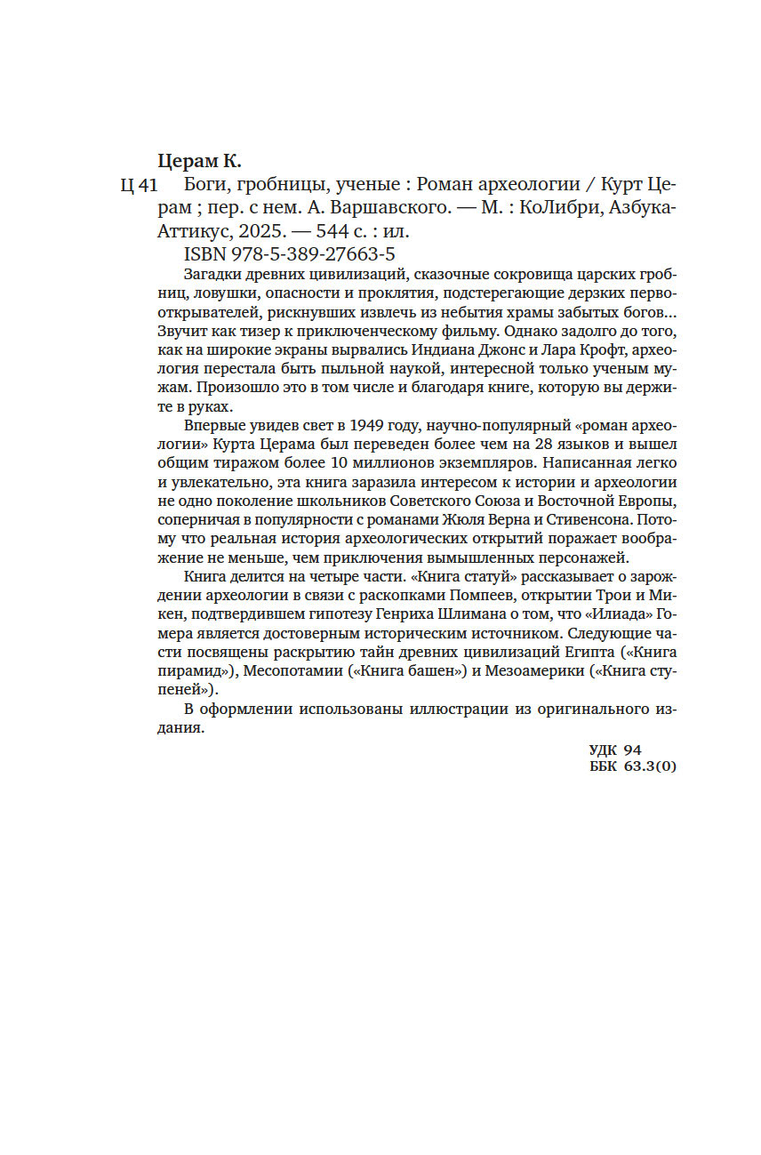 Впервые увидев свет в 1949 году, научно-популярный "роман археологии" Курта Церама был переведен более чем на 28 языков и вышел общим тиражом более 10 миллионов экземпляров. Написанная легко и увлекательно, эта книга заразила интересом к истории и археологии не одно поколение школьников Советского Союза и Восточной Европы, соперничая в популярности с романами Жюля Верна и Стивенсона. Потому что реальная история археологических открытий поражает воображение не меньше, чем приключения вымышленных персонажей.