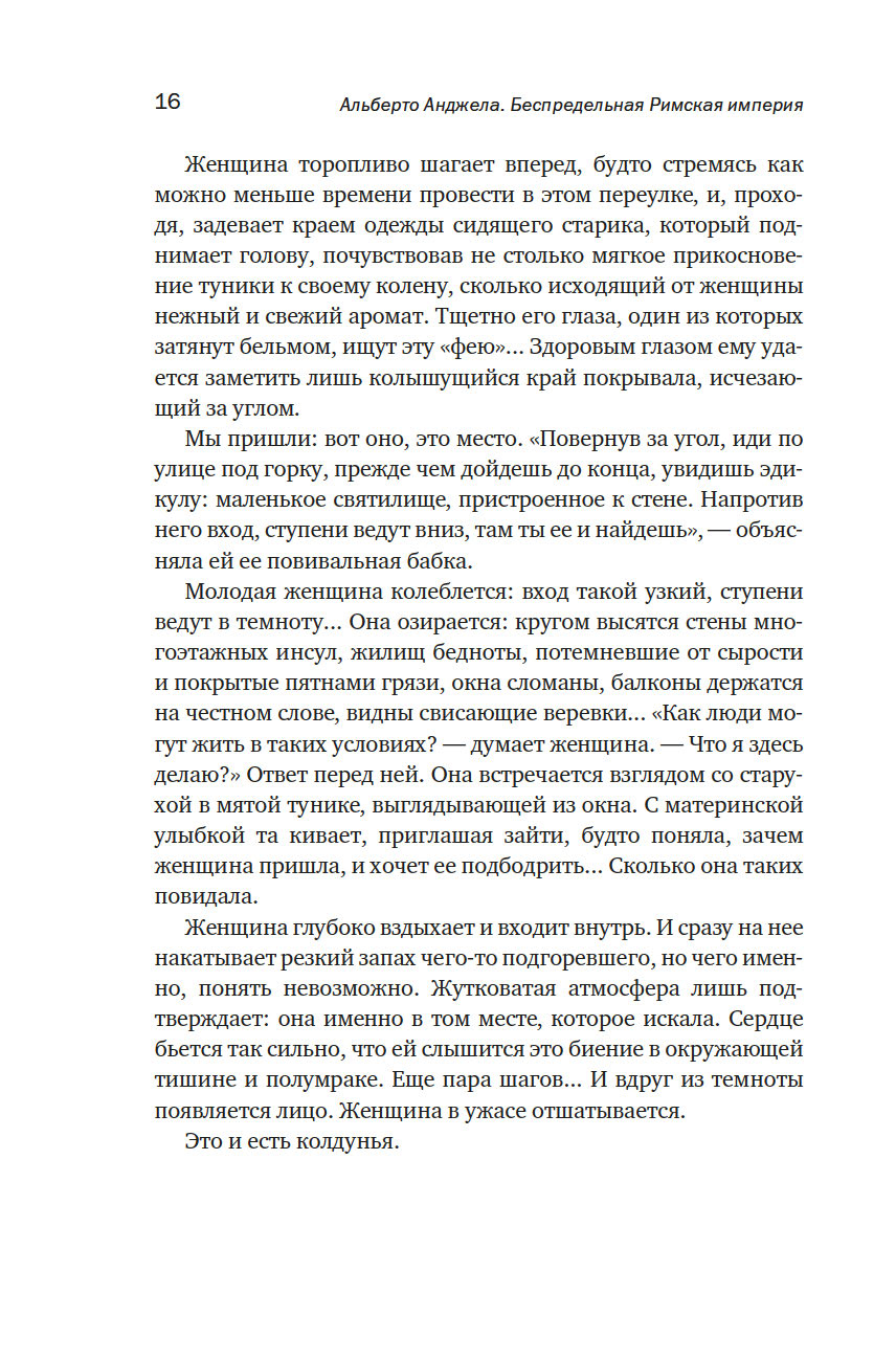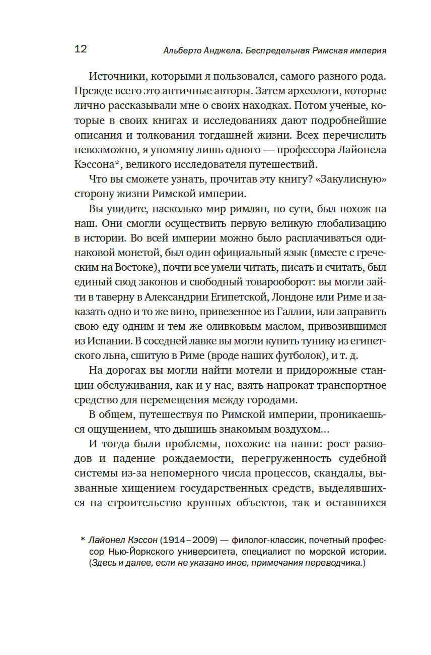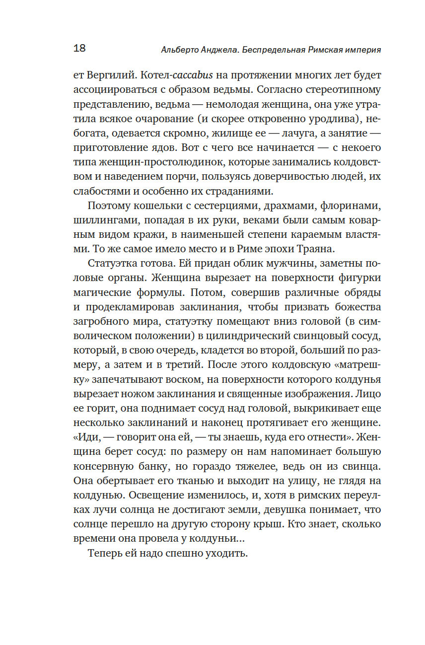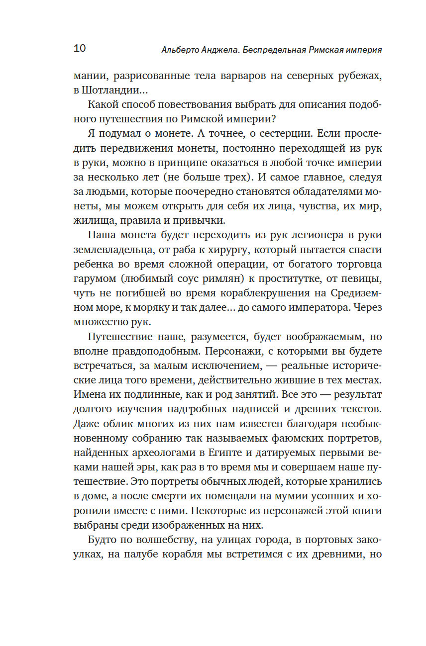 Беспредельная территория поражает масштабом: все побережье Средиземного моря, Европа от северных рубежей в Шотландии до Великой Армении... Как удавалось сохранить целостность? Альберто Анджела отвечает: единая валюта, единая сеть дорог и монарх, что правит мудро. Императорский лик запечатлен на монете, за которой читатель отправится в умопомрачительное путешествие. Монета будет переходить из рук легионера в руки певицы, от раба к хирургу, от моряка к философу и далее, минуя множество рук, – к самому императору. Мы увидим частную жизнь всех представителей сословия в эпоху расцвета и приблизимся к разгадке вопроса: почему она стала последней?