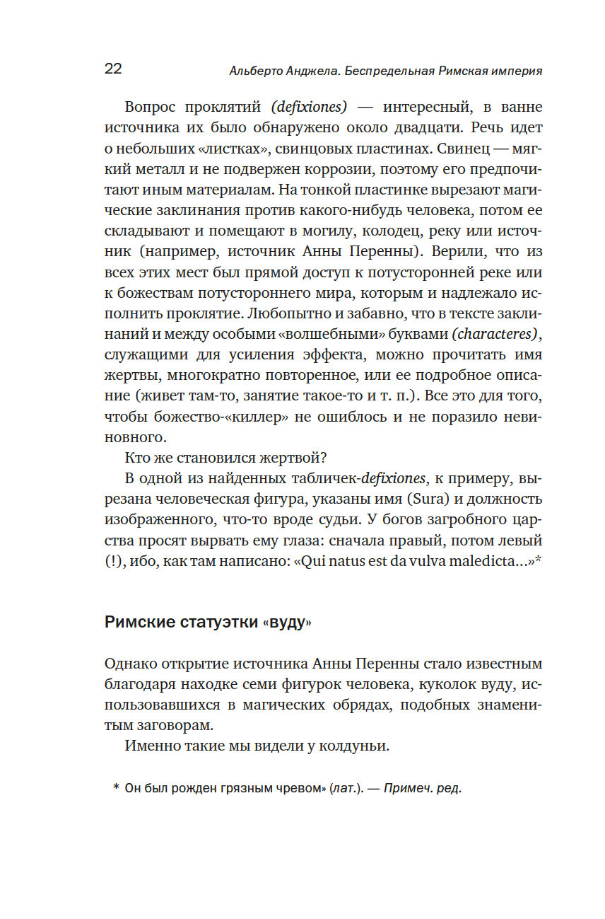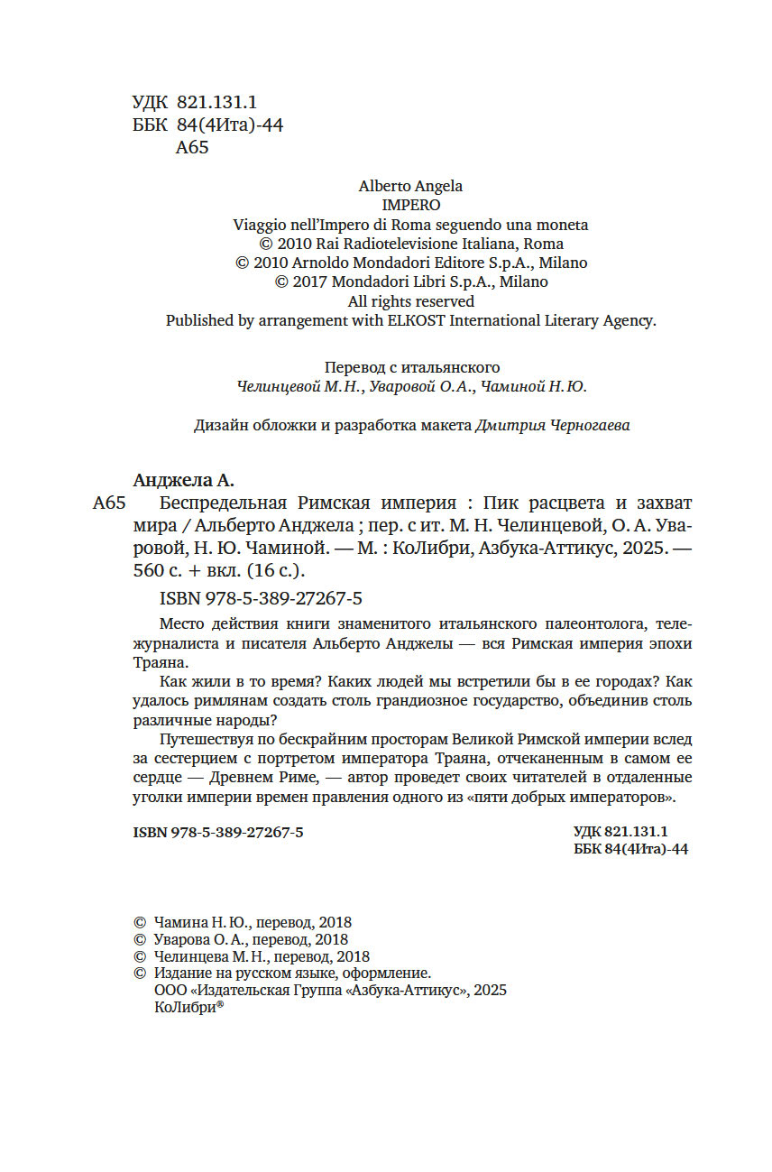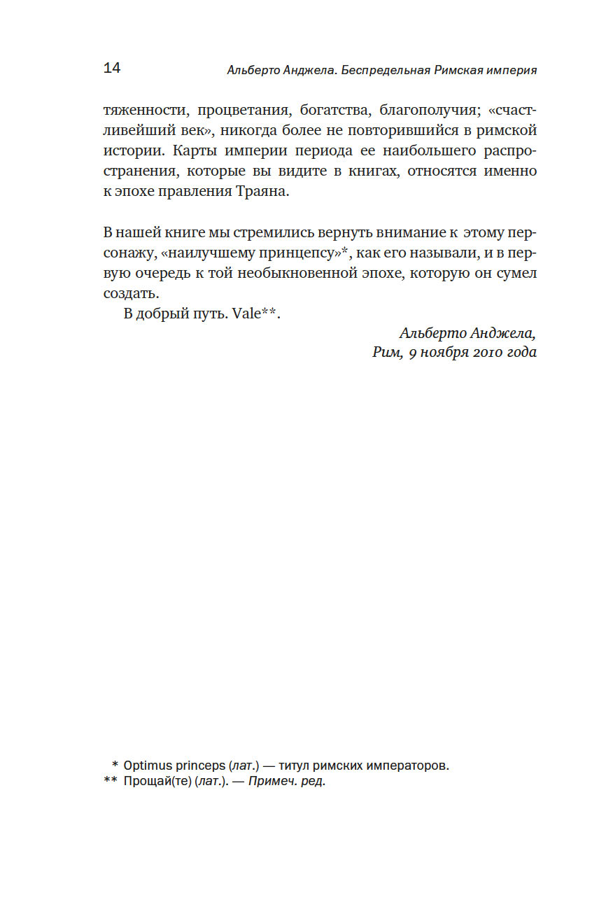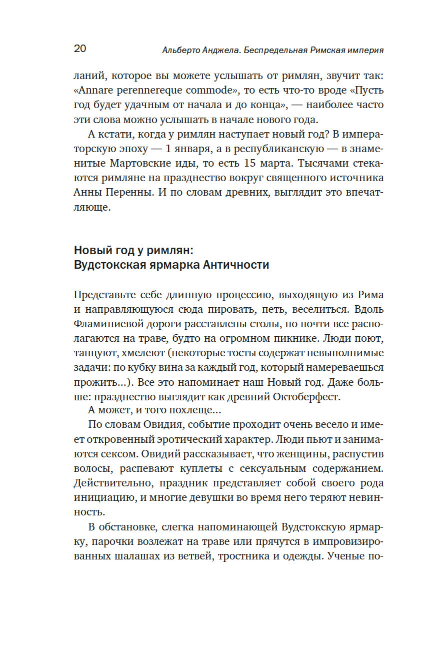 Беспредельная территория поражает масштабом: все побережье Средиземного моря, Европа от северных рубежей в Шотландии до Великой Армении... Как удавалось сохранить целостность? Альберто Анджела отвечает: единая валюта, единая сеть дорог и монарх, что правит мудро. Императорский лик запечатлен на монете, за которой читатель отправится в умопомрачительное путешествие. Монета будет переходить из рук легионера в руки певицы, от раба к хирургу, от моряка к философу и далее, минуя множество рук, – к самому императору. Мы увидим частную жизнь всех представителей сословия в эпоху расцвета и приблизимся к разгадке вопроса: почему она стала последней?