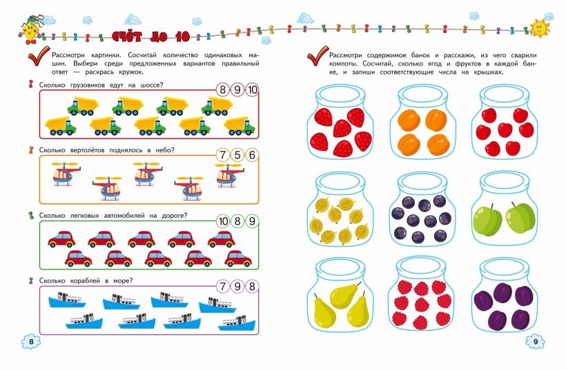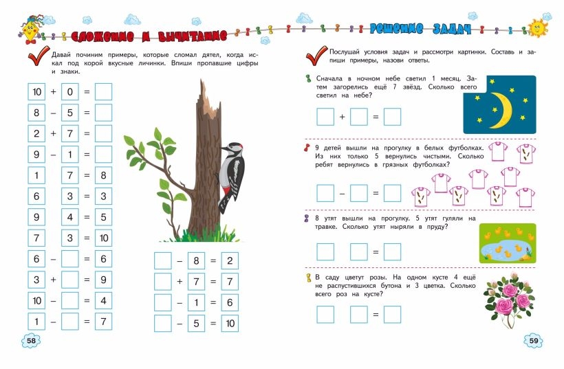 Занимаясь, дошкольник научится считать в прямом и обратном порядке, познакомится с понятиями "состав числа", потренируется выполнять простейшие арифметические действия (сравнение, сложение, вычитание) и освоит решение задач.