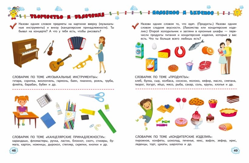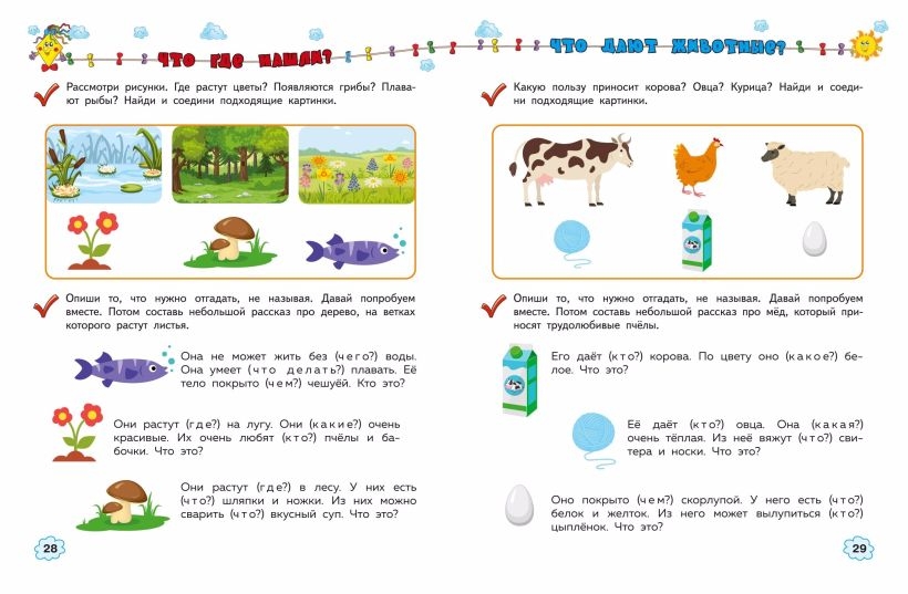 Занимаясь, дошкольник будет отвечать на вопросы, рассуждать, пересказывать услышанное, составлять рассказ по картинке. Красочные иллюстрации будут способствовать развитию речевых и коммуникативных навыков, воображения и логики. Кроме того, ребенок сможет увеличить словарный запас, расширить кругозор, в игровой форме подготовится к будущему обучению.