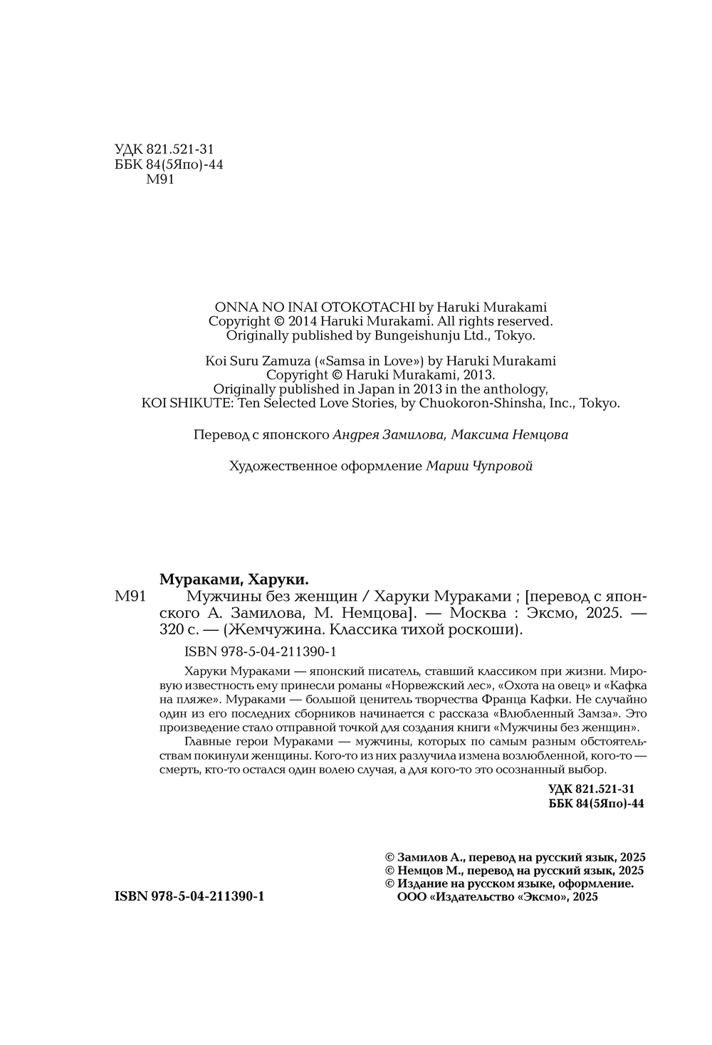 Харуки Мураками – японский писатель, ставший классиком при жизни. Мировую известность ему принесли романы "Норвежский лес", "Охота на овец" и "Кафка на пляже". Мураками большой ценитель творчества Франца Кафки. Не случайно один из его последних сборников начинается с рассказа "Влюбленный Замза". Это произведение стало отправной точной для создания книги "Мужчины без женщин".
