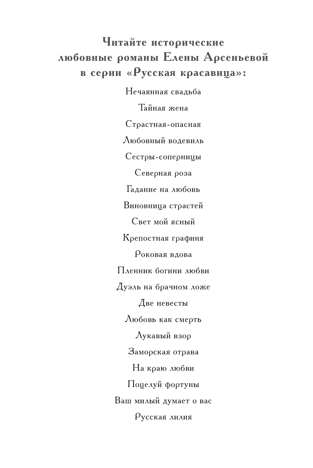 | Серия | Русская красавица. Романы Е. Арсеньевой |