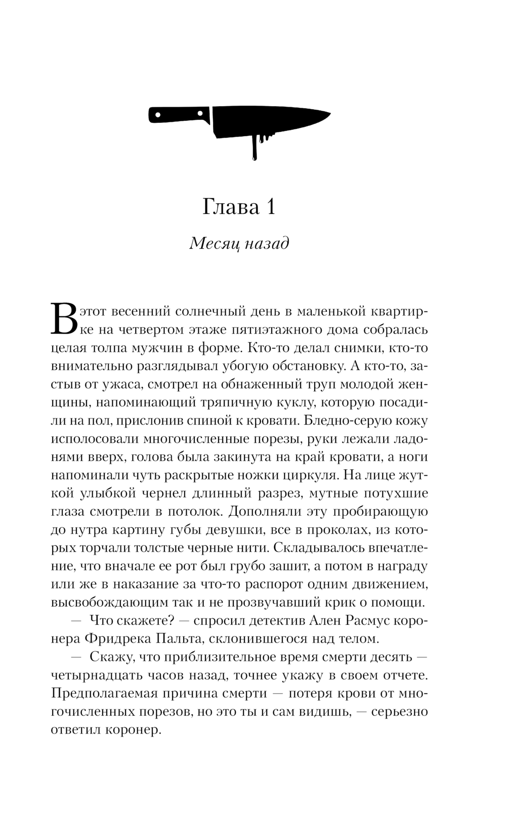 В квартире найдено тело молодой женщины с многочисленными ножевыми ранами. На лице жертвы чернеет разрез, создающий ужасающее подобие улыбки, а губы хладнокровно прошиты черными нитями. Но кто мог совершить такое зверство?