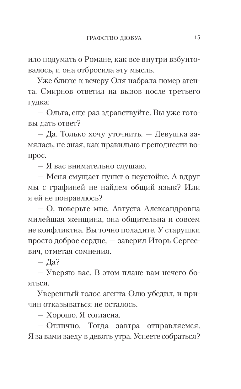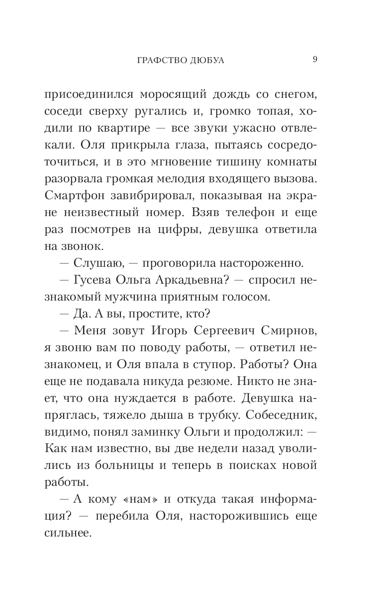 Соглашаясь на крайне привлекательное предложение о работе, Оля и не предполагала, что будет жить в доме, полном тайн и загадок. Стоило ей приехать, как в особняке начало происходить нечто странное. Сперва попросил о помощи призрак, а потом вернулись вещие сны, предупреждающие об опасности. Оля попыталась найти информацию о доме и его хозяевах, но, как оказалось, и графиня Дюбуа, и особняк официально не существуют. Успеет ли девушка разгадать страшную тайну графства Дюбуа, если сама уже в смертельной опасности...
