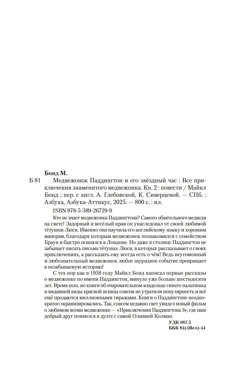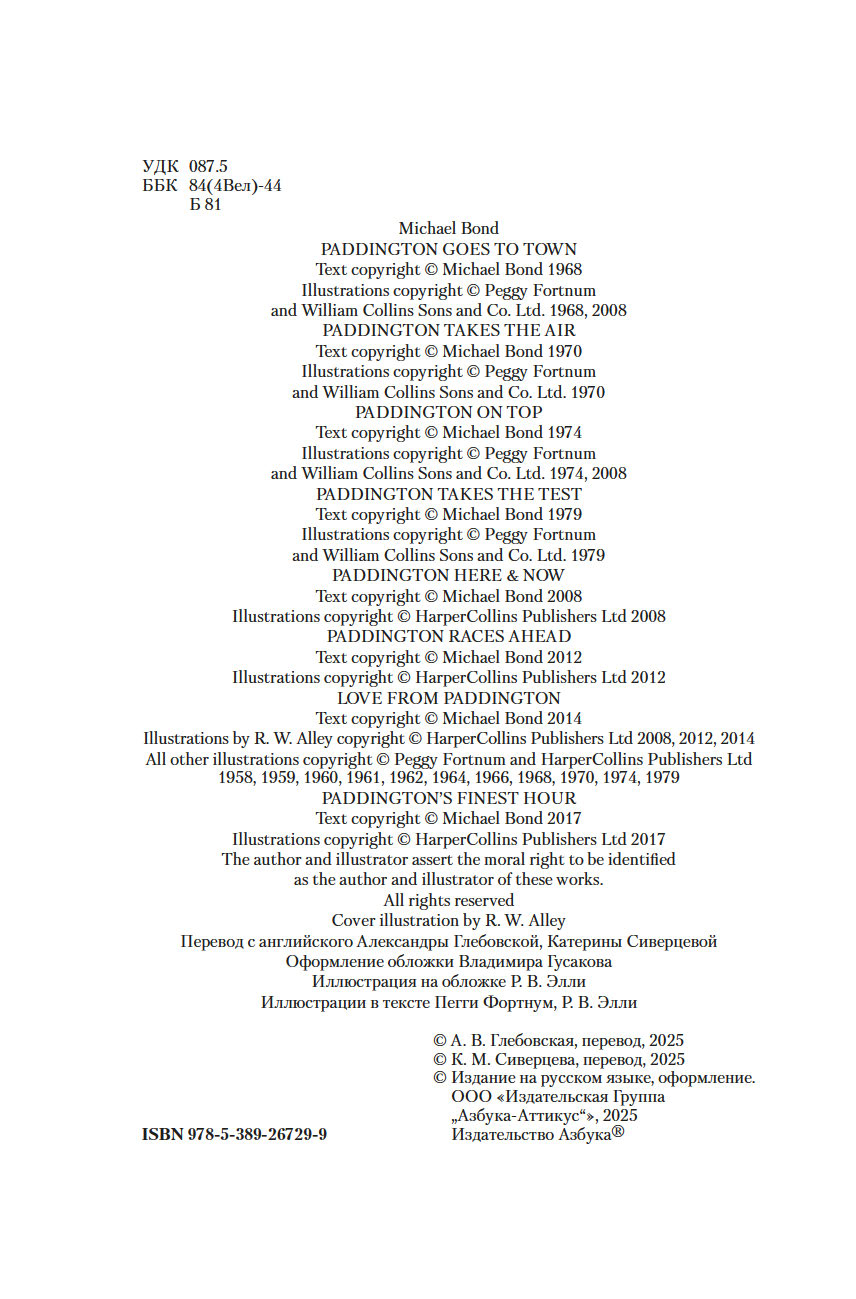 | Название в оригинале | Paddington Goes to Town, Paddington Takes the Air. Paddington on Top. Paddington Takes the Test. Paddington: Here and Now. Paddington Races Ahead. Love from Paddington. Paddington’s Finest Hour |