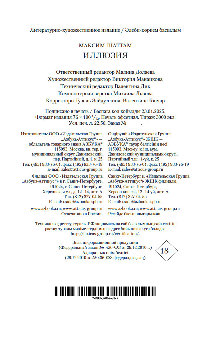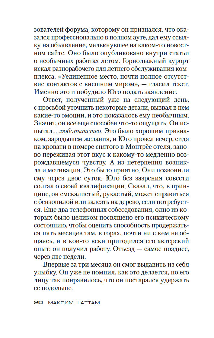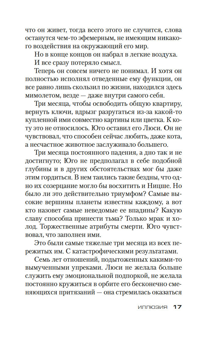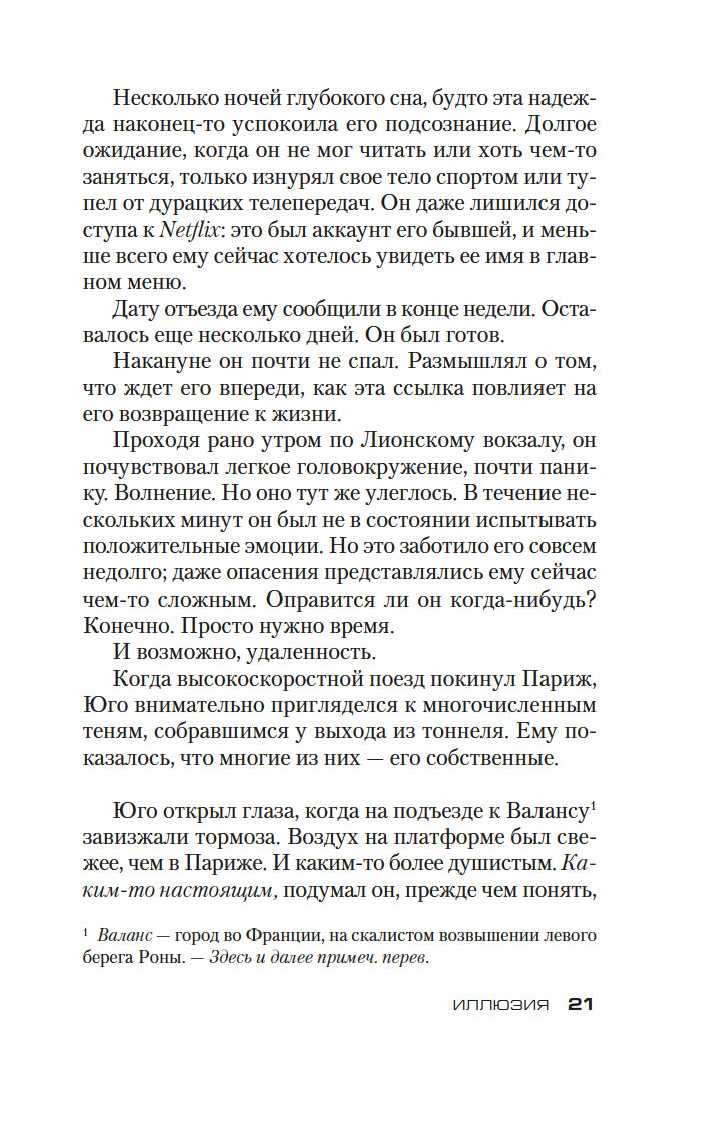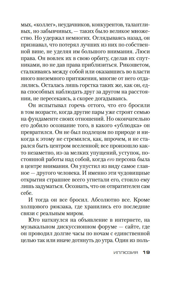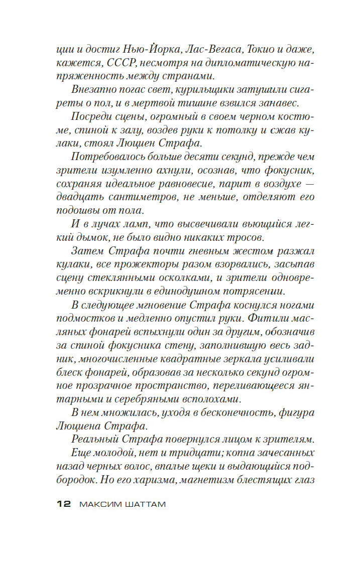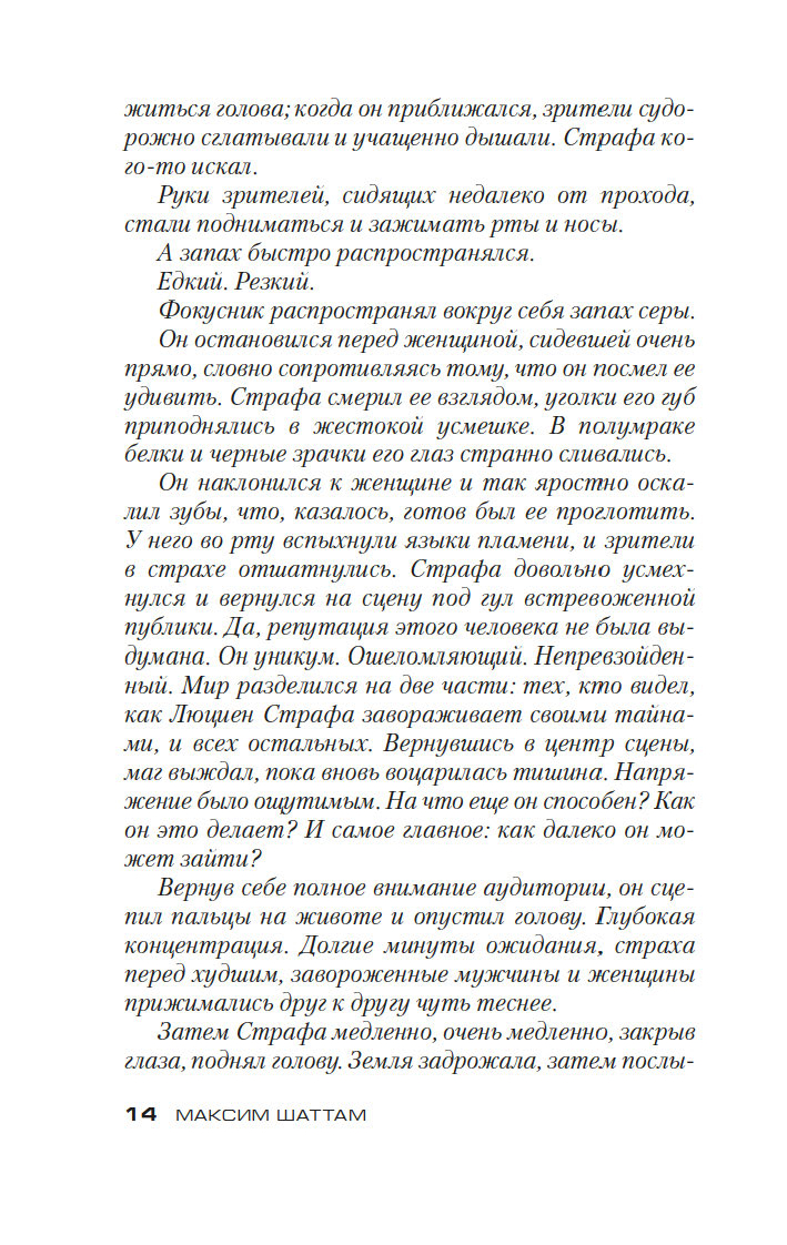 Максим Шаттам – автор детективных триллеров и нуаров, которые расходятся многомиллионными тиражами во Франции и стали бестселлерами еще в двух десятках стран. Шаттам изучал современную литературу и криминологию, поначалу вдохновлялся Стивеном Кингом и Томасом Харрисом, а в итоге стал во французской детективной литературе фигурой, ни в чем не уступающей Жан-Кристофу Гранже и Франку Тилье. Его новый триллер "Иллюзия" постепенно и неотвратимо заводит читателя все дальше в беспросветный лабиринт, где за каждым углом таятся чудовища и все новые ловушки, а выхода к свету, возможно, и вовсе нет.