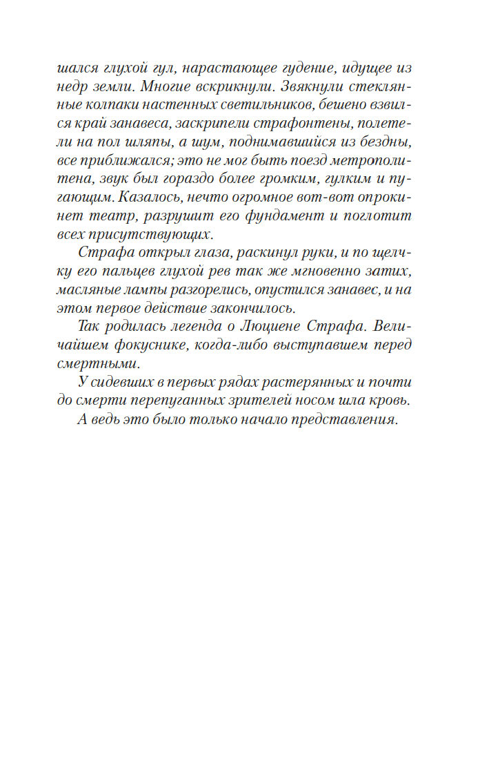 Но с первых же дней Юго начинает замечать, что происходит что-то неладное. На склоне над курортом маячит зловещая усадьба, и ее владелец никогда не показывается на глаза. Юго посещают ужасные видения, чего с ним раньше никогда не случалось. Без следа исчезает его коллега. В лесу таится что-то неведомое, но явно жуткое. Никого, кроме Юго, все это как будто не волнует. Он сходит с ума? Он нечаянно угодил в самое сердце заговора? Или на съемочную площадку "Сияния"? Или, быть может, это страшный фокус? Но кто здесь фокусник, кто простодушный зритель – и кто жертва?