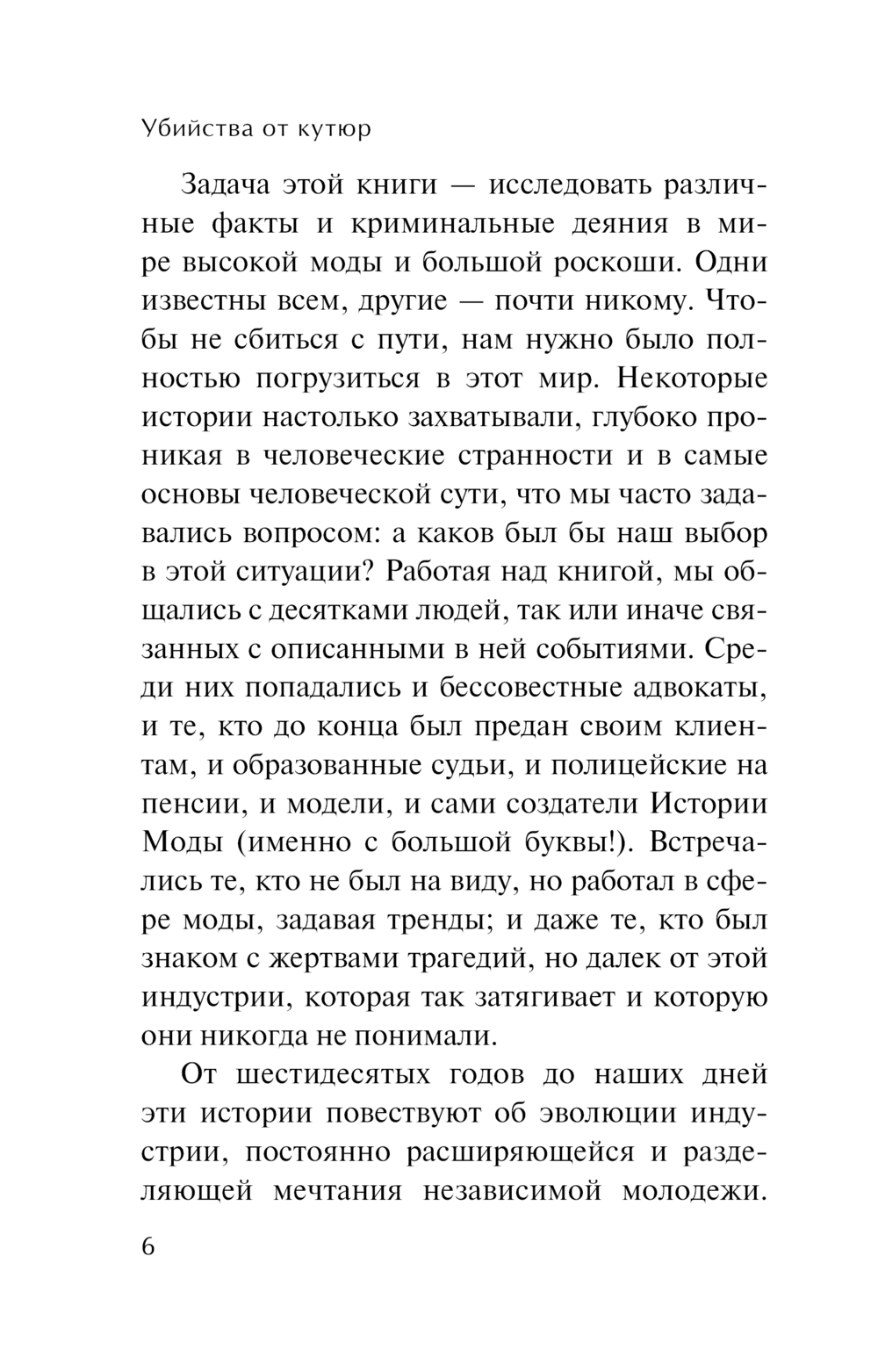 Похищение дочери Кельвина Кляйна, загадочная смерть музы Ив-Сен Лорана модели Катуши, ограбление дома Герлен, убийство Маурицио Гуччи в Милане – вот только часть увлекательных происшествий, расследованных в той книге. "Убийства от кутюр" – это одновременно и интригующий тру-крайм триллер, и уникальный гид по истории ведущих модных домов с многолетней историей.
