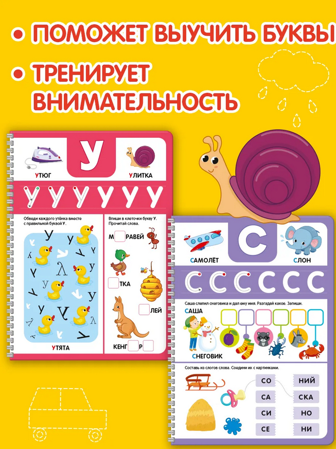 Увлекательное красочное издание в игровой форме познакомит вашего ребёнка с буквами русского алфавита. Разнообразные виды заданий направлены на развитие креативности, памяти, логического мышления и воображения.