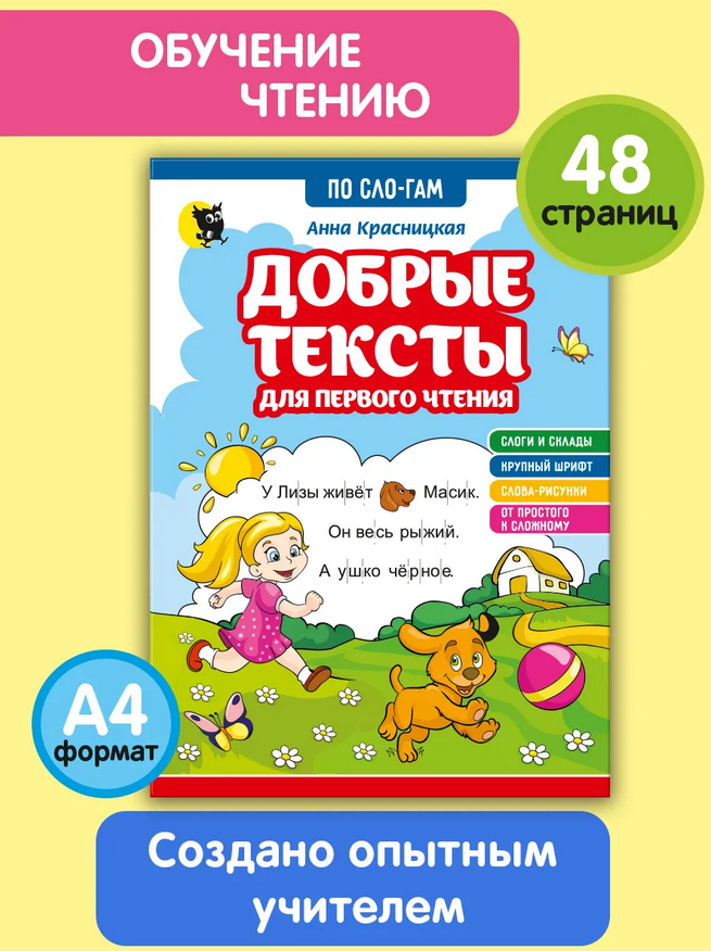 "Добрые тексты для первого чтения" – отличный вариант для самостоятельного чтения в послебукварный период. Особенно хорошо подойдёт ребятам, которые только-только научились читать.