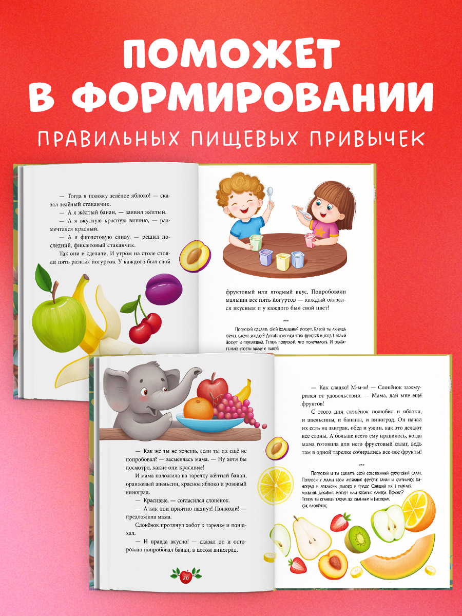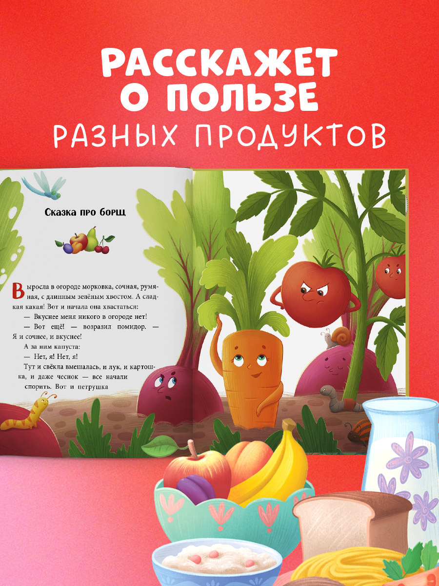 Вместе с героями сказок малыш подружится с кашами, супами и салатами, узнает о пользе многих продуктов и избавится от страха перед новыми блюдами. А задания после каждой сказки вовлекут ребенка в процесс приготовления пищи, научат экспериментировать со вкусами и подарят всей семье прекрасное настроение за завтраком, обедом и ужином.