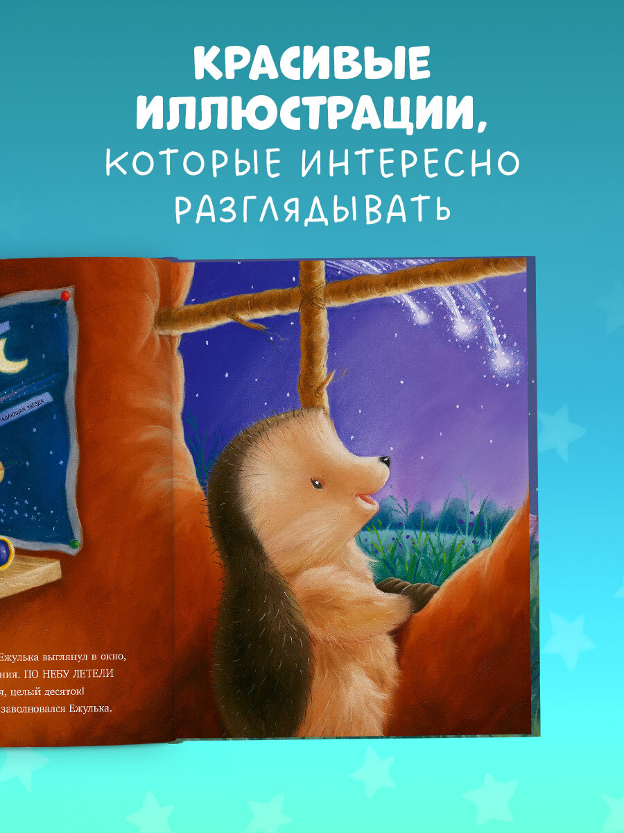 Однажды ясной летней ночью Ежулька выглянул в окно и увидел падающие звезды! Малыш поспешил рассказать об этом всем друзьям. Такое событие нельзя пропустить! Собравшись вместе, Ежулька, Лиса, Заяц, Барсук и мама-Мышка с мышатами отправились на холм, откуда видно все звездное небо. Но на пути им неожиданно встречаются препятствия! Неужели зверята не смогут полюбоваться волшебным звездопадом и загадать желание?