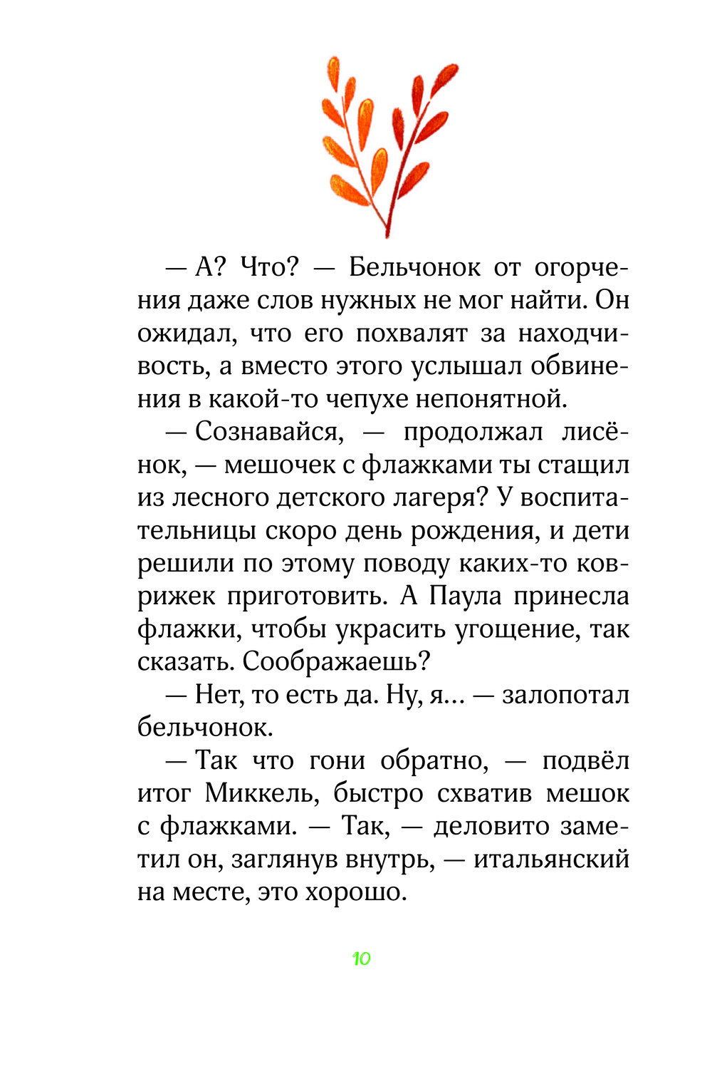 В лесной детский лагерь приходит новенькая – Элени. Она особенная: у неё трижды встречается 21-я хромосома, чего нет ни у одного другого ребёнка. Но есть ещё нечто, что делает Элени уникальной: она умело раскладывает осенние листья по цветам и быстро находит друзей. А тем временем в Пряничном лесу появляется необычное для него существо, которое тоже отличается от других обитателей...