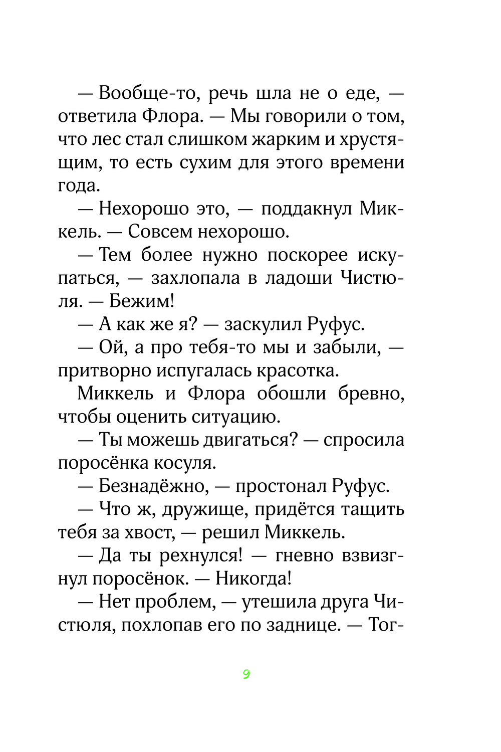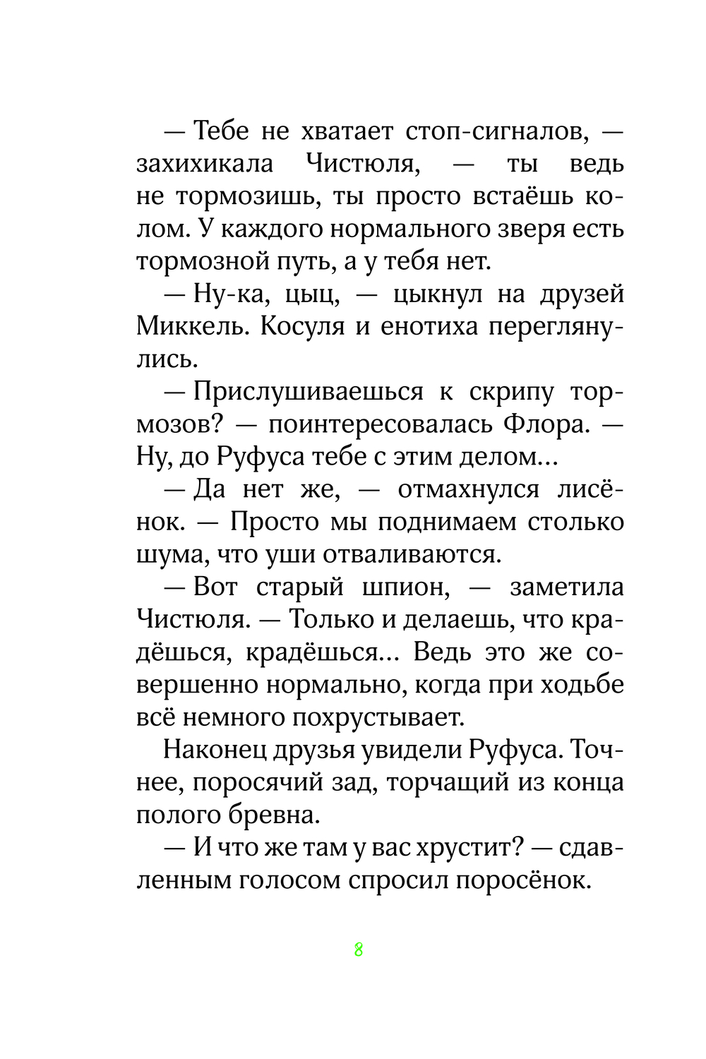 Лесные герои отправляются на новую спасательную операцию! Их новый друг Лео – тихий мальчик, который обычно разговаривает мало. При волнении он произносит слоги с запинкой, но с Руфусом, Миккелем, Чистюлей и Флорой его слова льются, как водопад! Вместе зверята придумывают, как помочь Лео, и предлагают ему потрясающую идею...