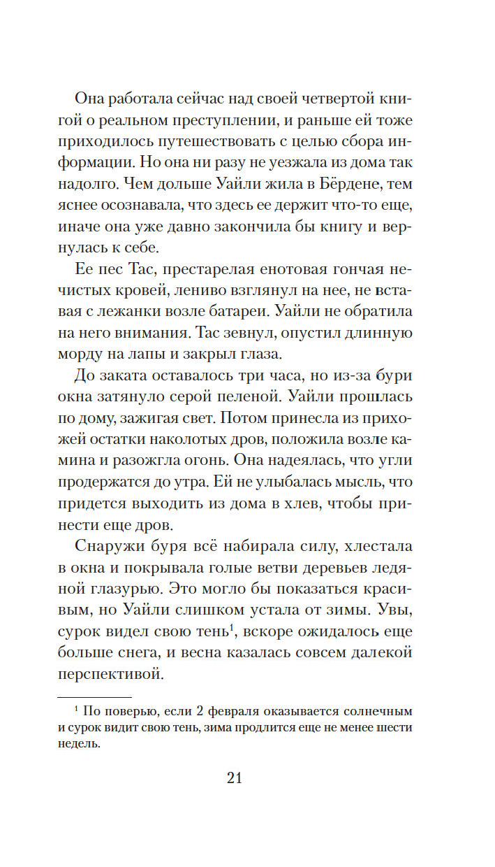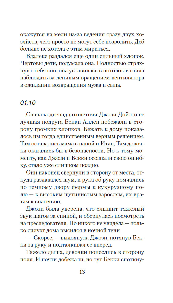 Уайли Ларк выбрала себе странное призвание: она пишет документальные книги о реальных преступлениях. Ради очередного сюжета она уединяется в старом фермерском доме на окраине захолустного городка Бёрден, в штате Айова. Уютный камин, снегопад за окном и полная тишина – идеальные условия для работы, если бы не одно но: два десятка лет назад в этом самом доме хладнокровно убили трех человек, а тринадцатилетняя девочка бесследно исчезла.