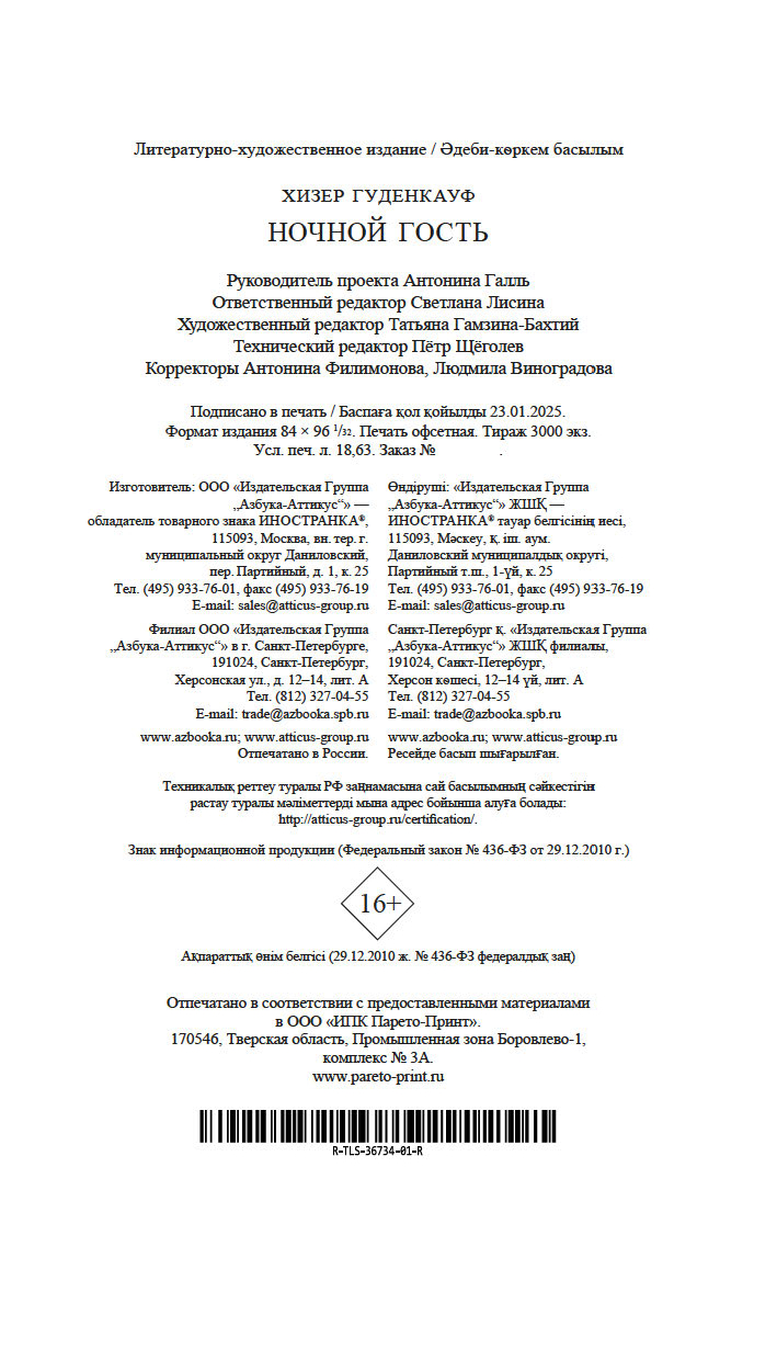 | Изготовитель | ООО "Издательство "Иностранка". 109017, РФ, г. Москва, ул. Пятницкая, 41 |