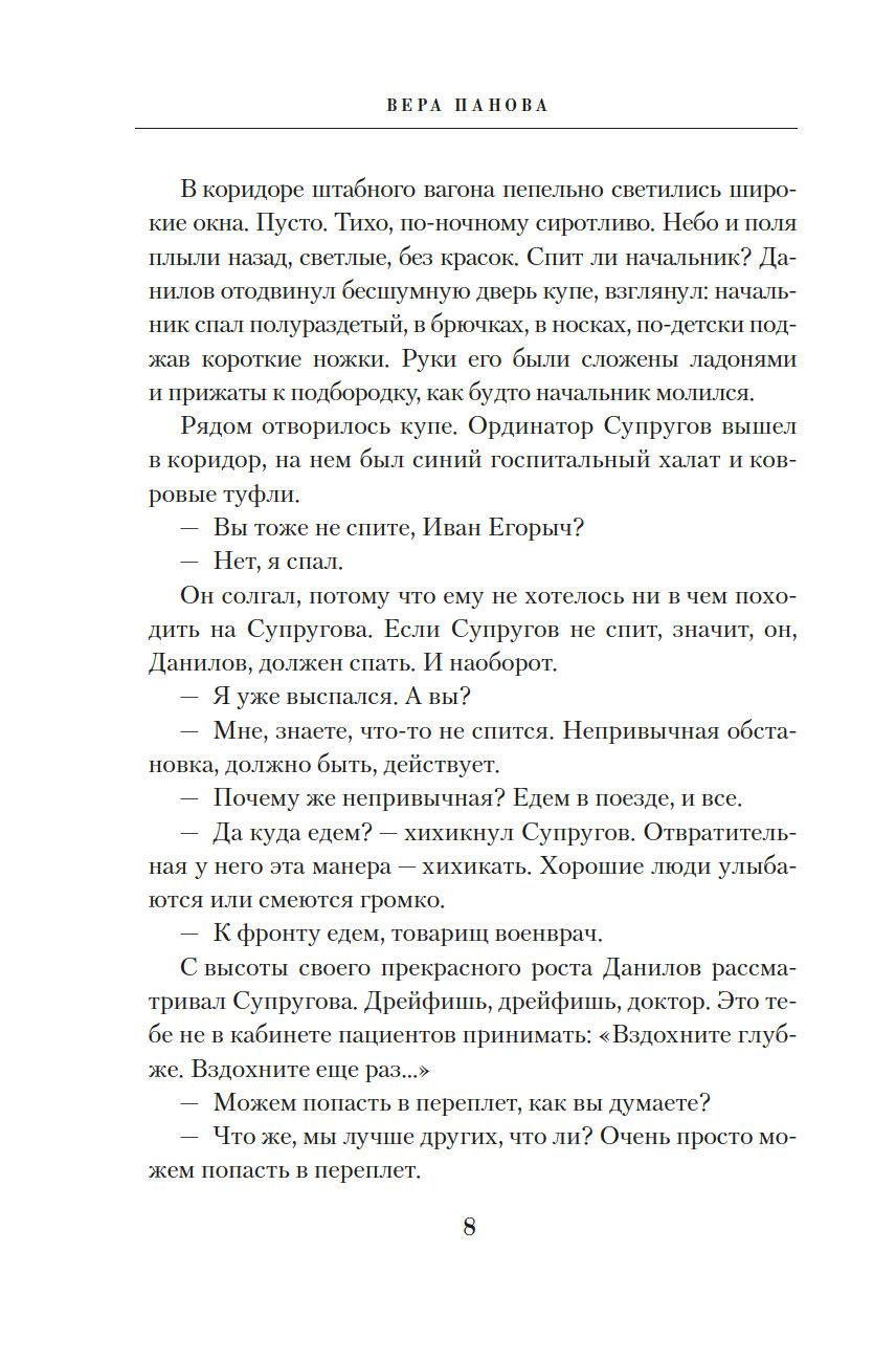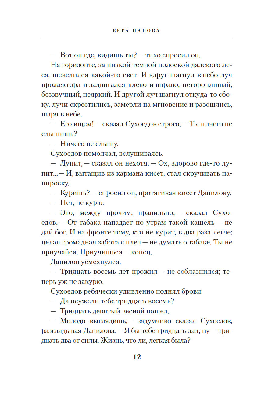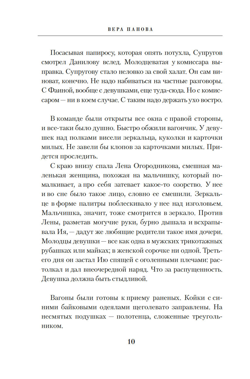 Вера Панова через личные истории героев рисует масштабное полотно подлинных человеческих судеб. У каждого из ее героев свои принципы, свои горести и радости, но именно здесь и сейчас они спутники на дорогах войны. Спасая жизни раненых, врачи и медсестры внесли неоценимый вклад в Победу.