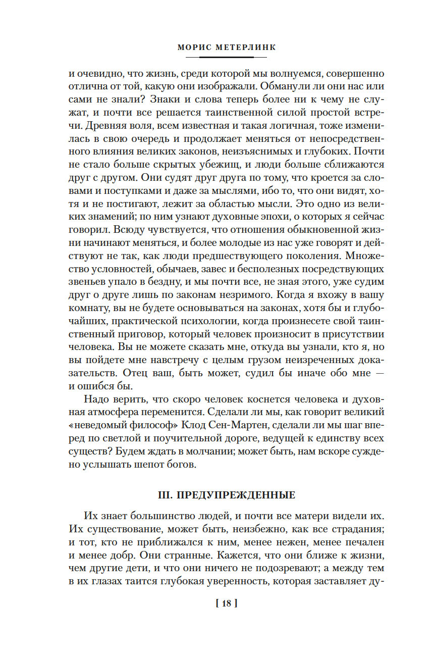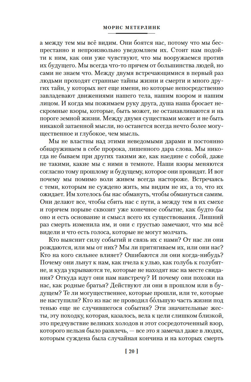 Морис Метерлинк – бельгийский драматург, эссеист и поэт, лауреат Нобелевской премии, – более всего известен своими пьесами, пленяющими сказочной атмосферой и полетом поэтической фантазии. Самая знаменитая пьеса Метерлинка – "Синяя птица" – рассказывает о детях, получивших в подарок от феи умение "видеть души вещей". Возможно, этим искусством владел и сам автор, поскольку натурфилософские произведения Метерлинка очаровывают не меньше, чем его сказки.