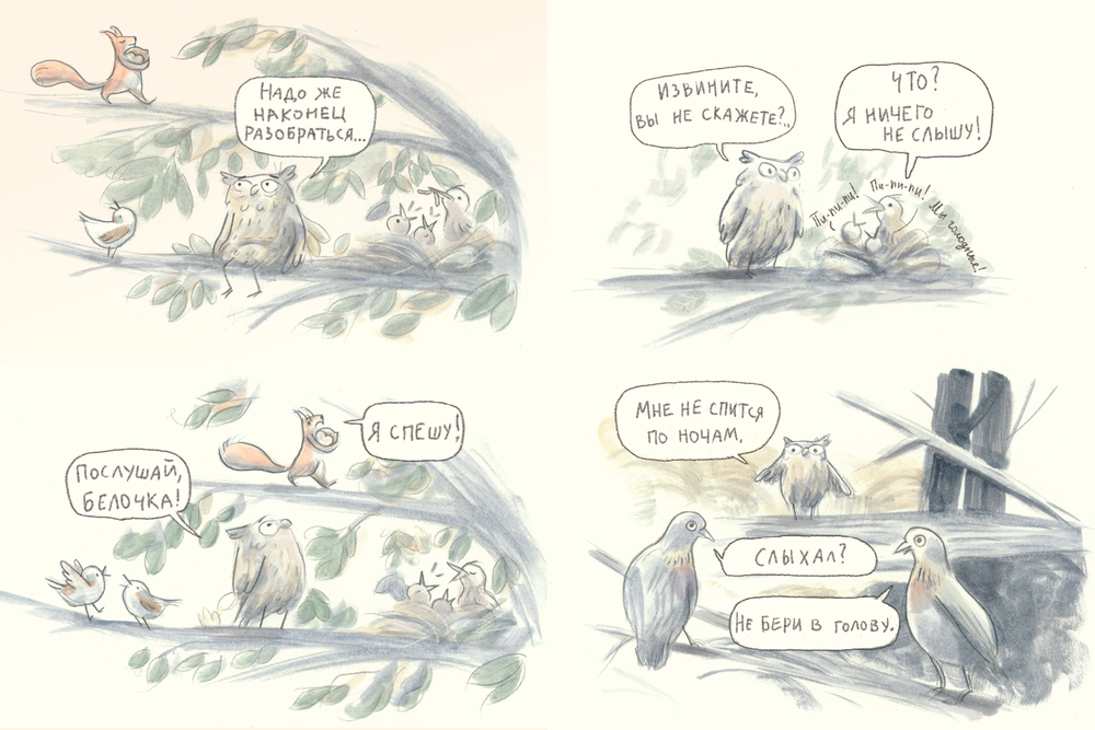 В лесу живет сова и она не спит по ночам. А утром ей все мешают спать. Почему так получилось? Сова решает разобраться и начинает расспрашивать жителей леса – белку, паука, медведя... Но и у кого нет для нее ответа. Сова была в отчаянии, пока не встретила ежика, который спит, ест и играет, когда он привык. И сова увидела, что все лесные обитатели живут по-своему, и нет ничего страшного в том, что кто-то по ночам спит, а кто-то – бодрствует.