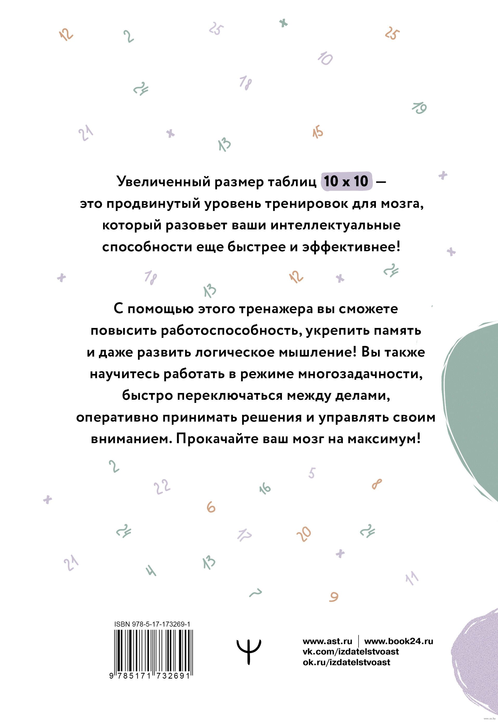 Большие таблицы Шульте 10х10. Интенсивный тренинг для мозга на 1 месяц. Отбивки: память, внимание, интеллект