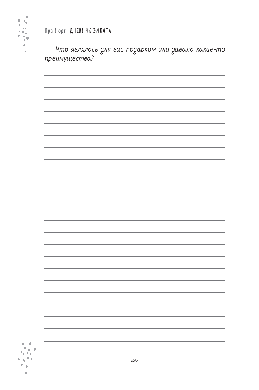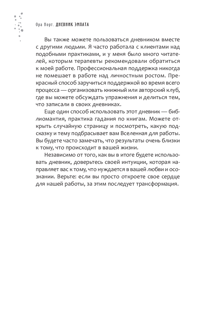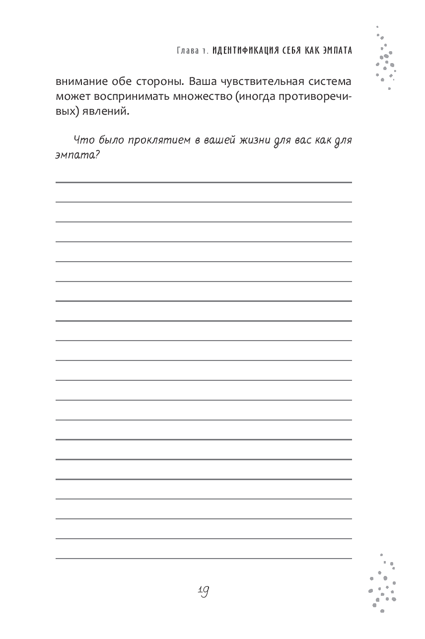 Правда в том, что такая чувствительность – это одновременно и то и другое. И вы можете научиться управлять этим. Простые техники, описанные в этом дневнике, основаны на многолетнем обучении автора и опыте работы с собой и с другими людьми. Они помогут проникнуть в суть эмпатической природы и начать свой путь к гармонии с самых основ.