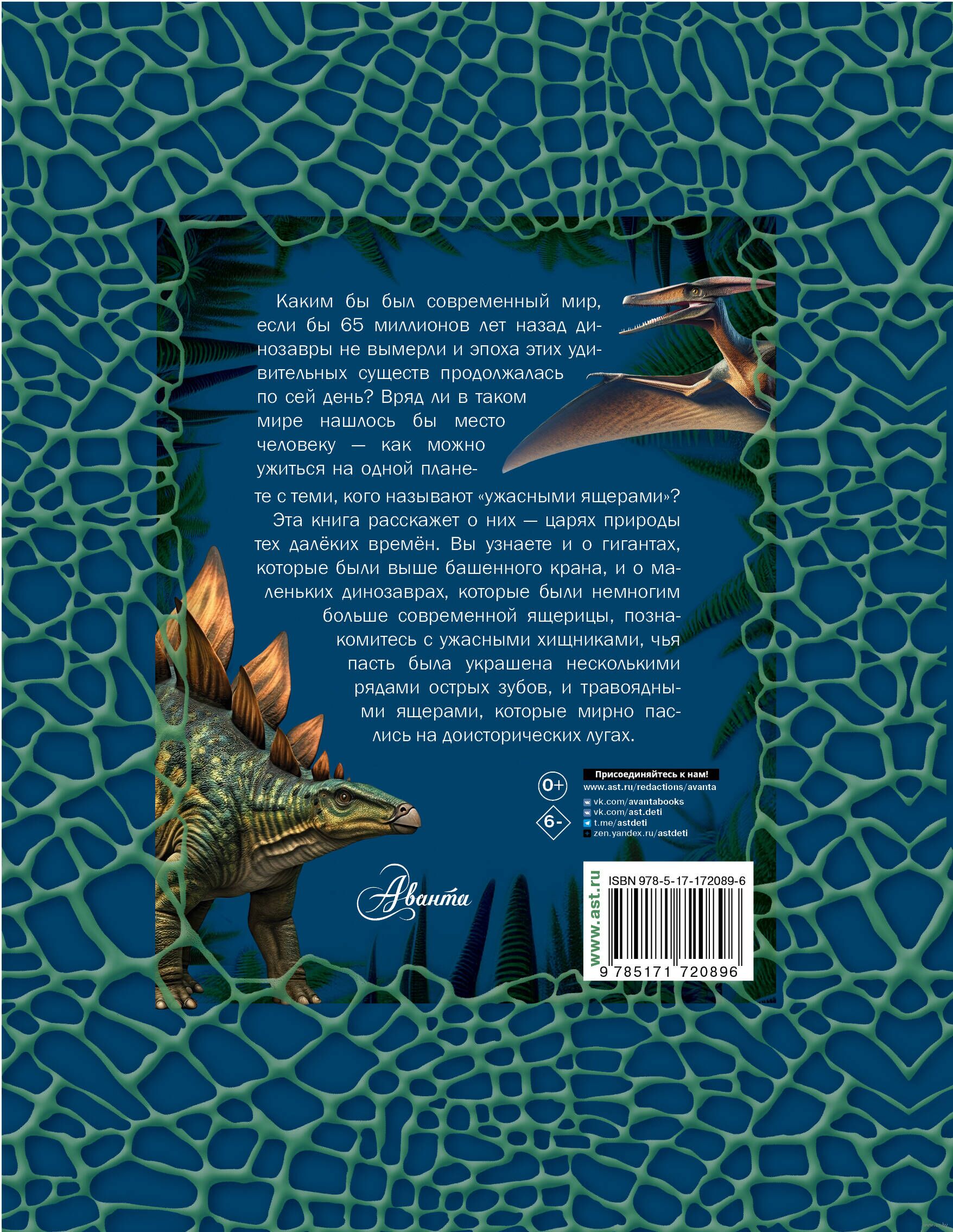 Эта книга расскажет о них – царях природы тех далеких времен. Вы узнаете и о гигантах, которые были выше башенного крана, и о маленьких динозаврах, которые были немногим больше современной ящерицы, познакомитесь с ужасными хищниками, чья пасть была украшена несколькими рядами острых зубов, и травоядными ящерами, которые мирно паслись на доисторических лугах. Когда на Земле появились первые динозавры? Как ученые смогли восстановить их внешний вид? Неужели некоторые ящеры были покрыты перьями? Что положило конец эре динозавров? Узнайте ответы на эти и многие другие вопросы, изучая эту прекрасно иллюстрированную энциклопедию.