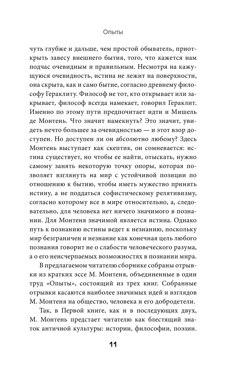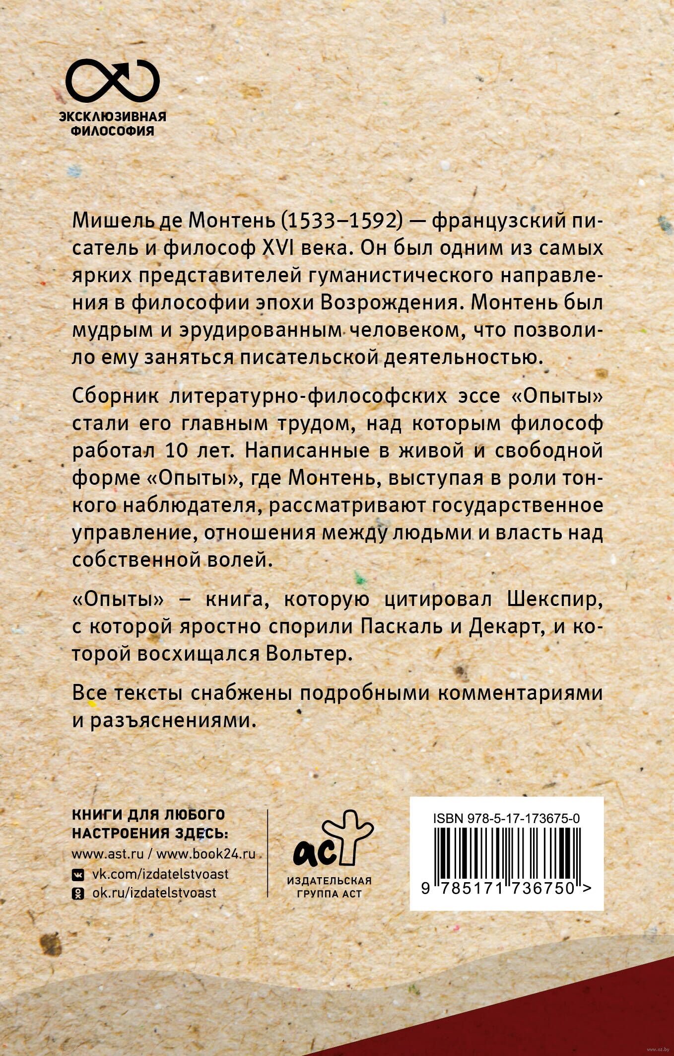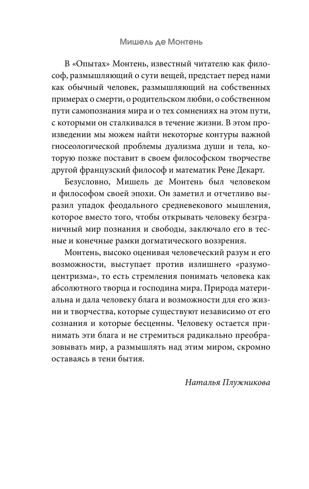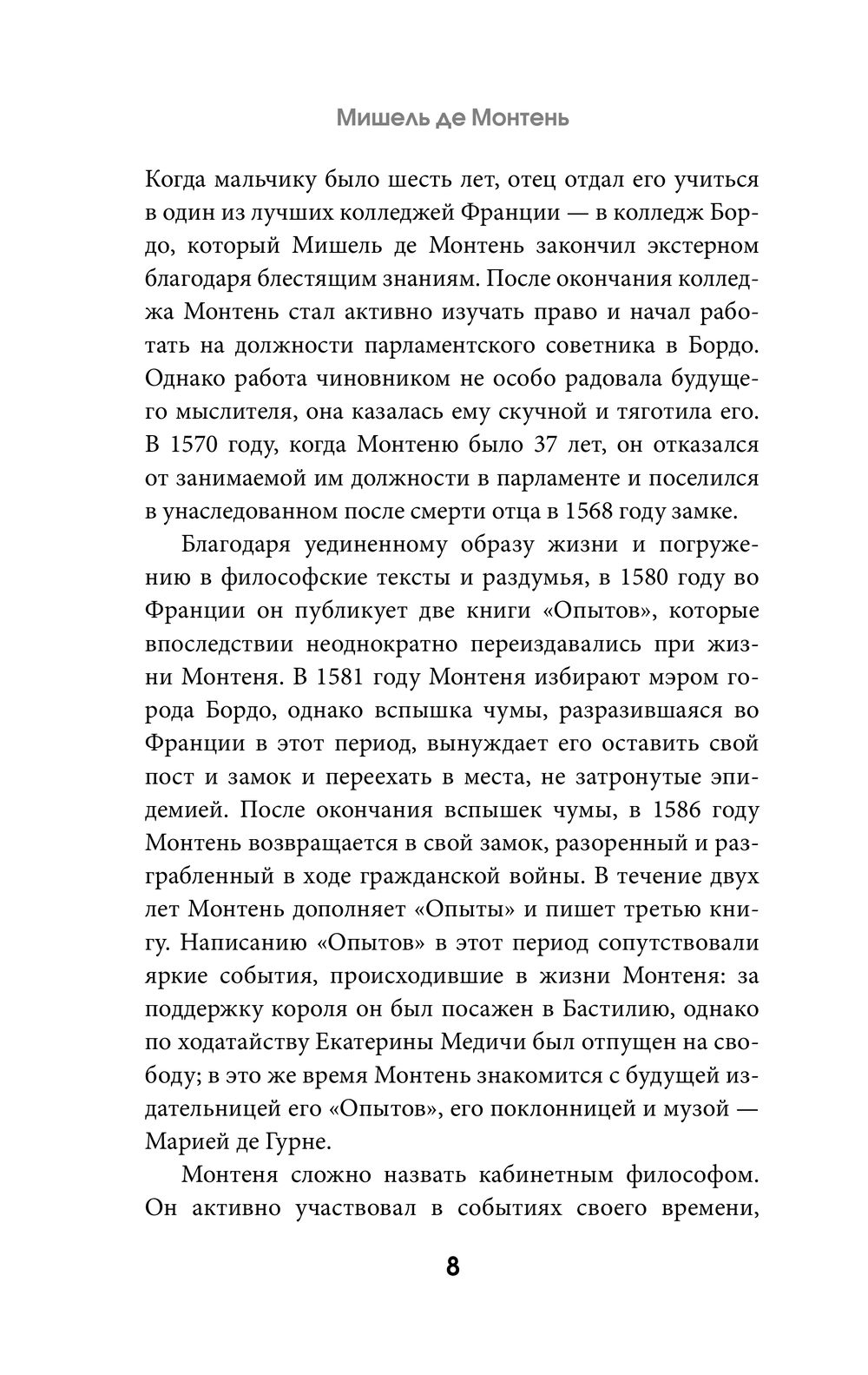 "Опыты" – книга, которую цитировал Шекспир, с которой яростно спорили Паскаль и Декарт, и которой восхищался Вольтер.