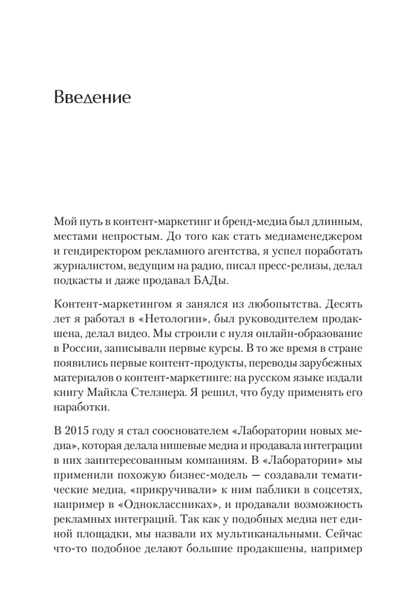 В книге впервые собраны все знания о том, как привлекать читателей и превращать их в клиентов. С помощью практических инструкций и реальных примеров вы научитесь делать блоги и бренд–медиа, узнаете, как с помощью контент-маркетинга выстраивать прочную связь с читателем, разберетесь, как развивать и продвигать ваш ресурс, считать его эффективность, собирать команду и оптимизировать бюджеты. Бонус книги – ошибки, которые совершал автор. Это те самые "грабли", обойдя которые создатели бренд-медиа обезопасят компанию от пустых трат, а сотрудников – от выгорания.