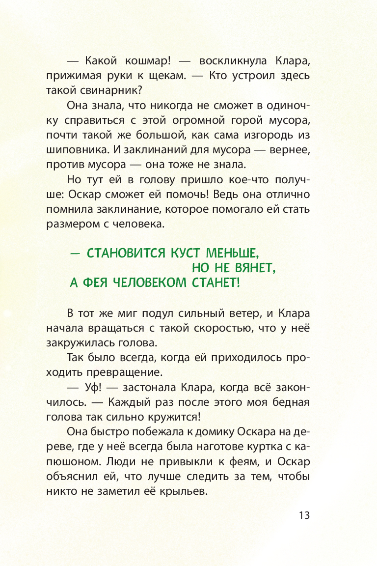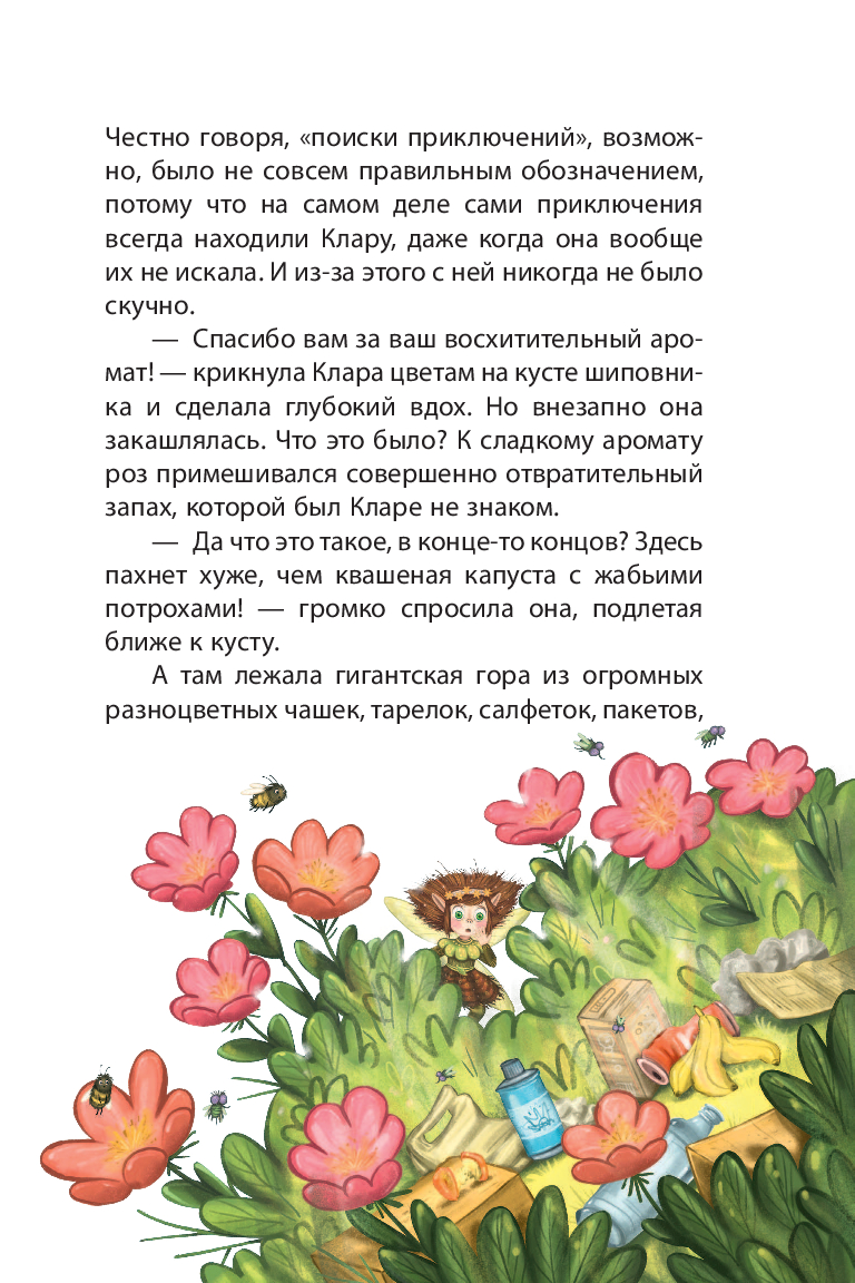 По зачарованному лесу распространился странный запах. Пахнет хуже, чем квашеная капуста с жабьими потрохами! Оказывается, это люди выкидывают мусор прямо в лесу! Даже магия Клары против него бессильна. Вместе с другом Оскаром из мира людей фее придется провести детективное расследование, узнать, кто выбрасывает отходы, и решить проблему уже человеческими методами.