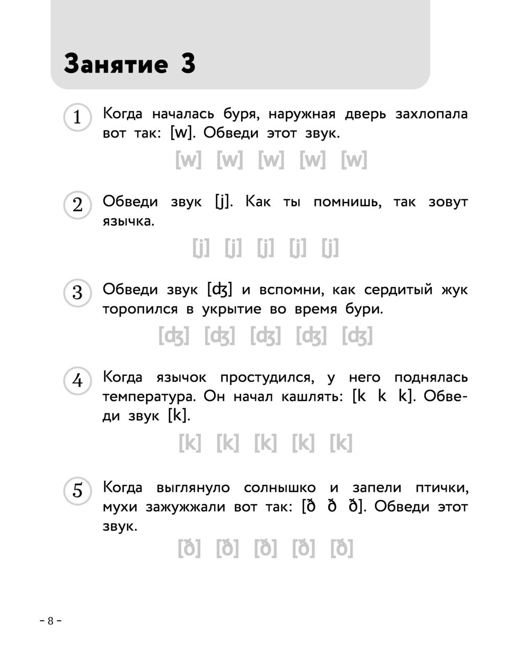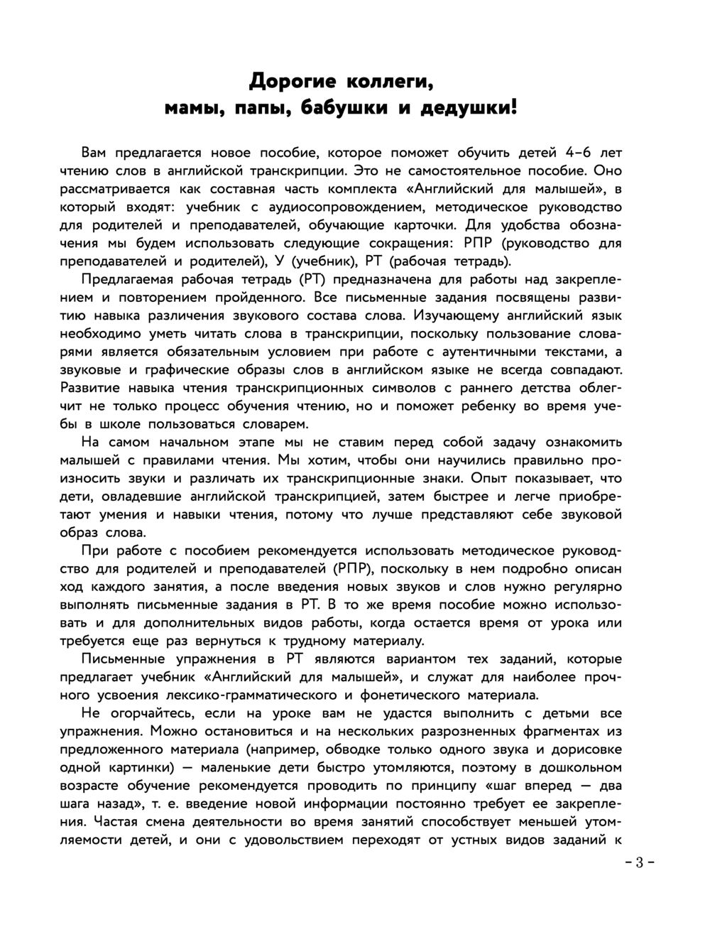 Рабочая тетрадь к пособию-бестселлеру "Английский для малышей"! С ее помощью ребенок научится узнавать английские буквы и звуки и пользоваться транскрипцией, освоит знаки транскрипции, повторит английские слова, которые встретились в пособии "Английский для малышей", поработает над произношением. Все полезные навыки он будет нарабатывать... в игре – раскрашивая, обводя, находя и называя английские буквы, звуки, слова и предложения. Английский язык станет понятнее, а занятия им – веселее!