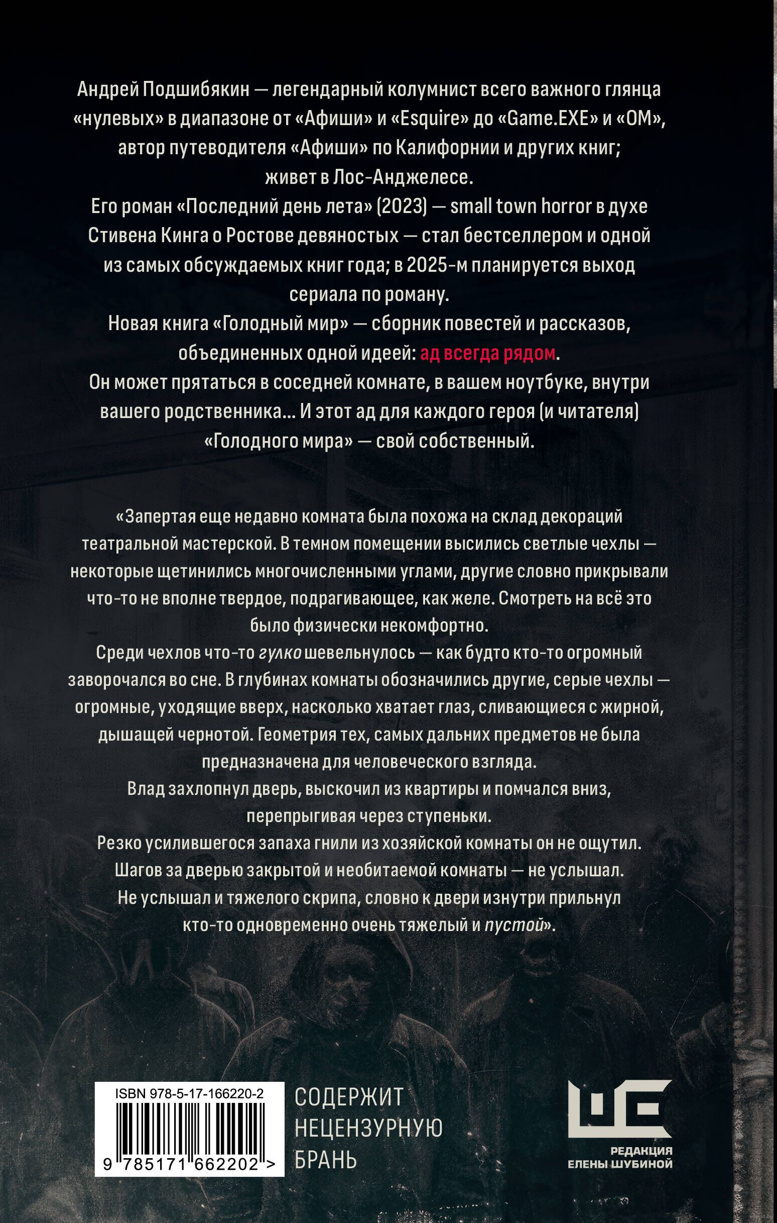Новая книга "Голодный мир" – сборник повестей и рассказов, объединенных одной идеей: ад всегда рядом. Он может прятаться в соседней комнате, в вашем ноутбуке, внутри вашего родственника... И этот ад для каждого героя (и читателя) "Голодного мира" – свой собственный.