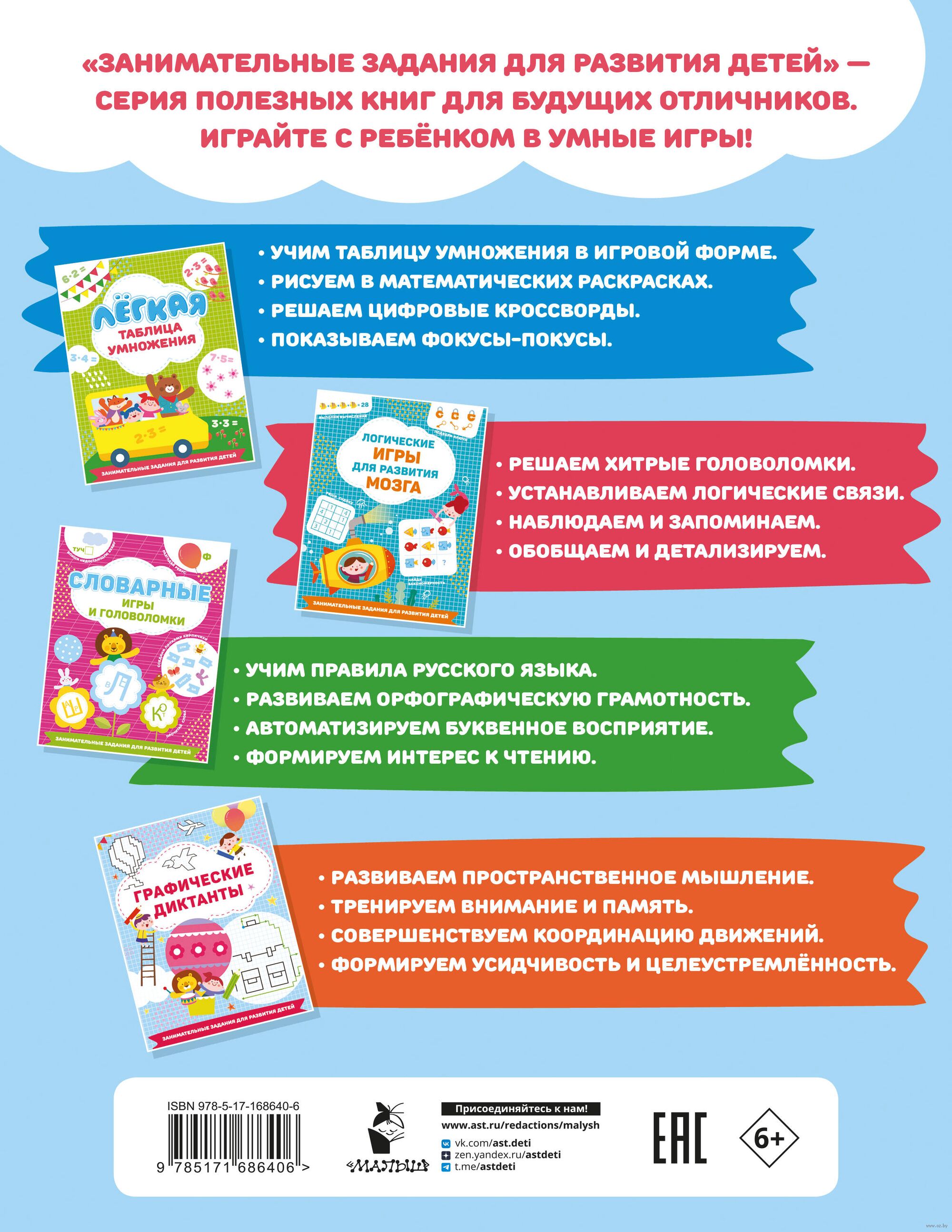 "Графические диктанты" – это умный тренажёр с разнообразными заданиями и занимательным сюжетом. Ребёнок потренирует зрительную память и пространственное мышление, улучшит скорость и точность реакций, разовьёт координацию движений и мелкую моторику, усвоит понятия "вниз", "вверх", "влево", "вправо", "по диагонали".