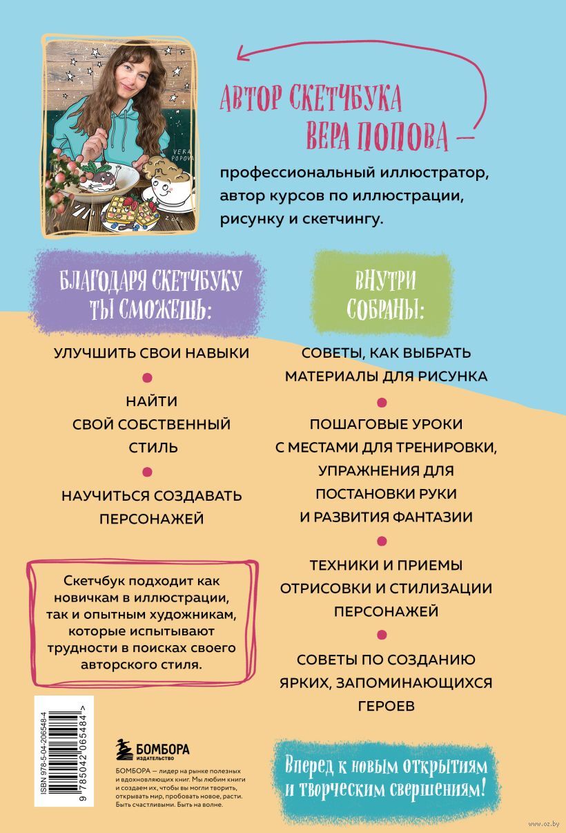 Автор скетчбука Вера Попова – профессиональный иллюстратор, автор курсов по иллюстрации, рисунку и скетчингу.