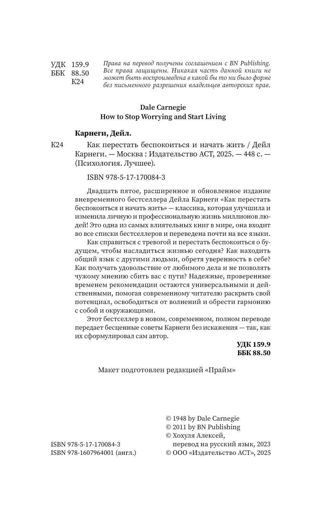 | Название в оригинале | How to Stop Worrying and Start Living |