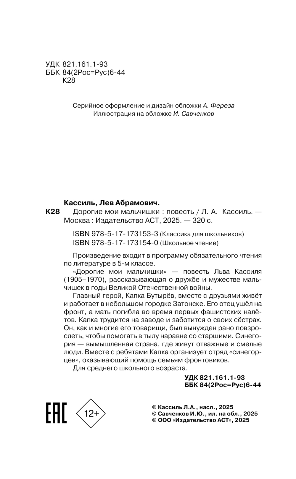 "Дорогие мои мальчишки" – повесть Льва Кассиля (1905-1970), рассказывающая о дружбе и мужестве мальчишек в годы Великой Отечественной войны.