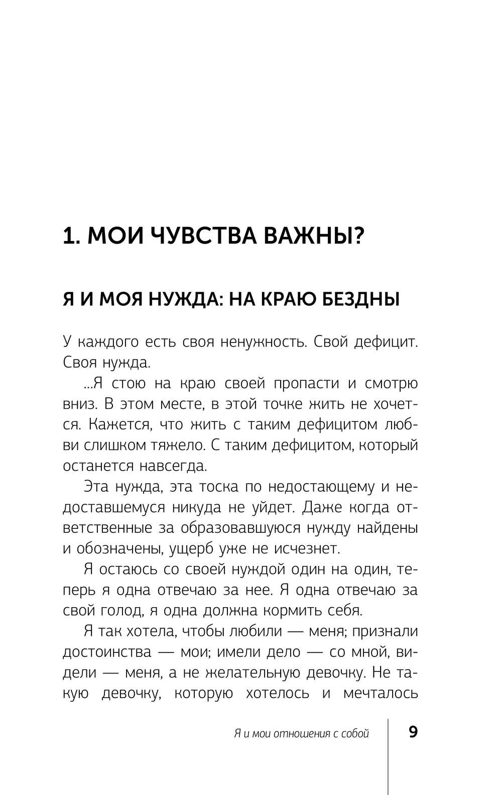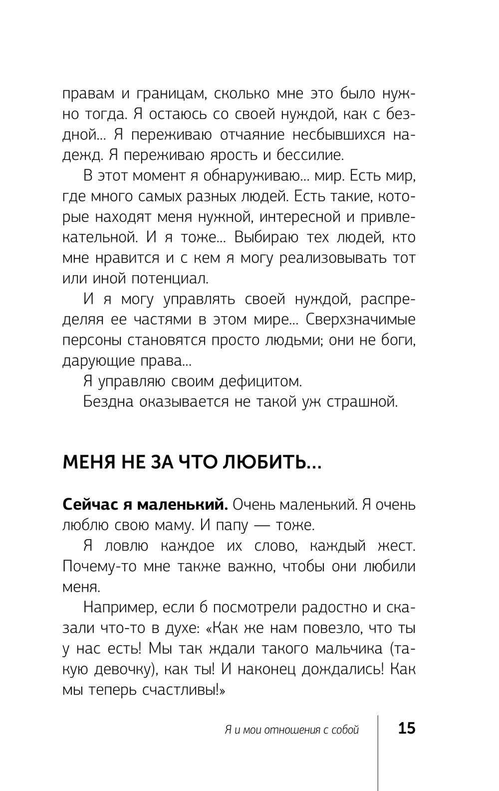 Нас учили нести ответственность за других людей: поддерживать их, принимать за них решения, заботиться об их чувствах. Нас учили нести ответственность за свои поступки, но почти никого из нас не учили тому, что мы должны думать и заботиться в первую очередь о себе. Мало кому это удается в совершенстве, поэтому мы переполнены виной и сопротивлением.