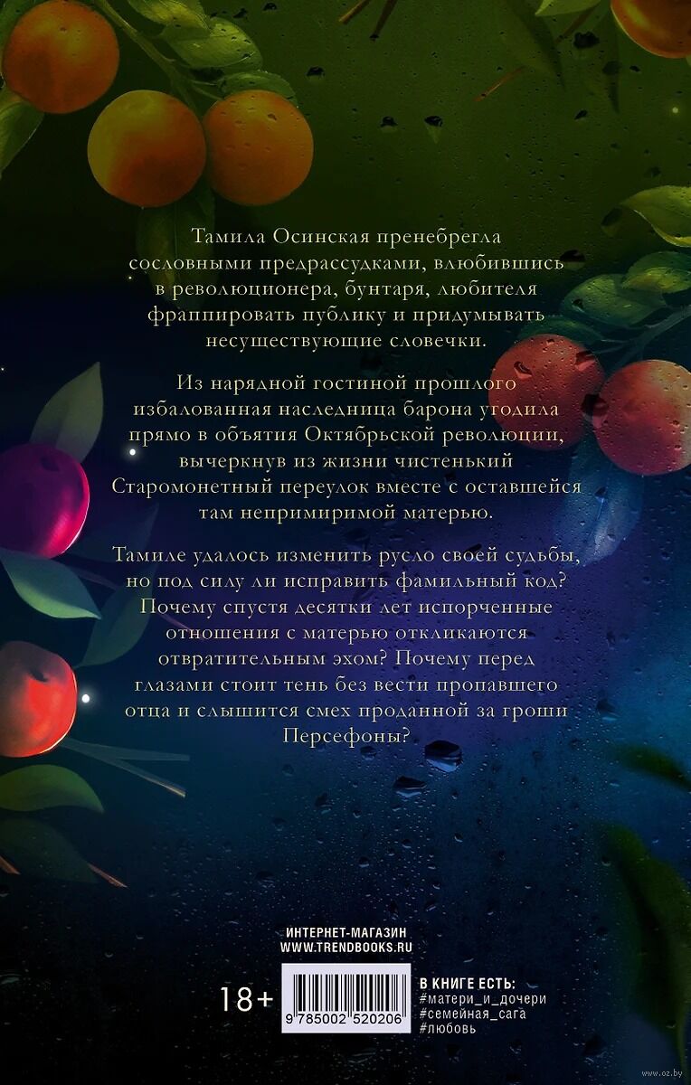 Тамиле удалось изменить русло своей судьбы, но под силу ли исправить фамильный код? Почему спустя десятки лет испорченные отношения с матерью откликаются отвратительным эхом? Почему перед глазами стоит тень без вести пропавшего отца и слышится смех проданной за гроши Персефоны?