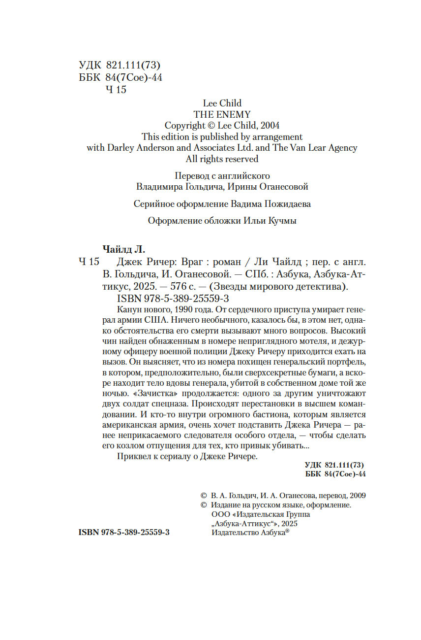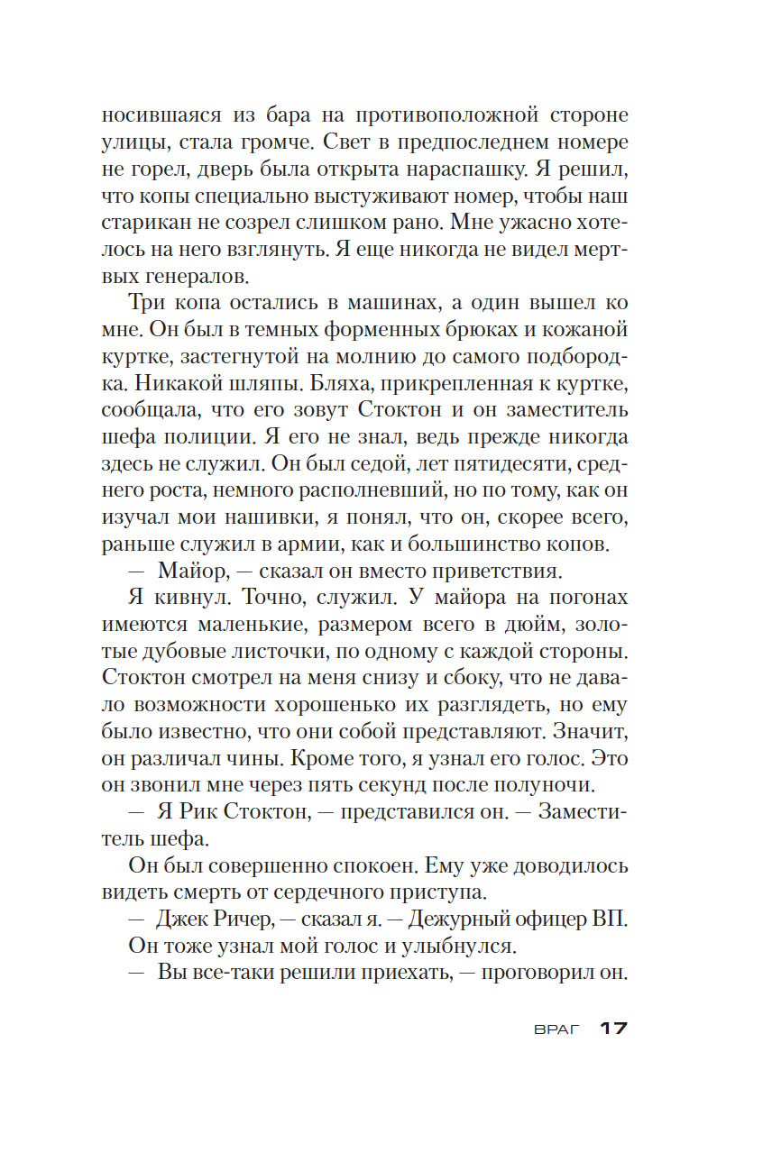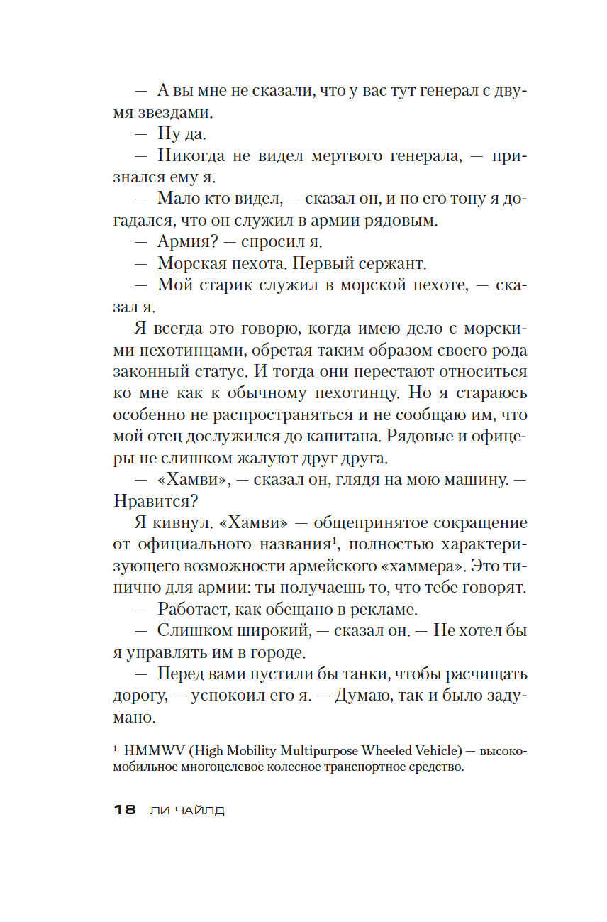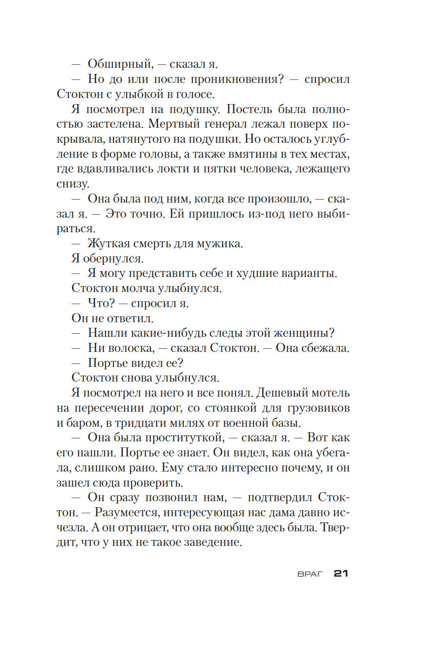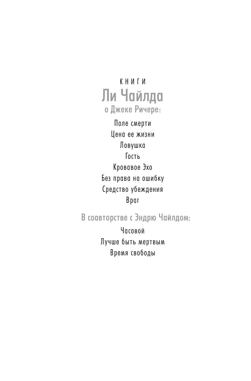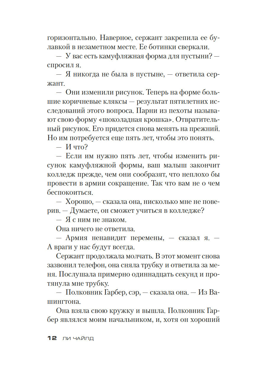 Канун нового, 1990 года. От сердечного приступа умирает генерал армии США. Ничего необычного, казалось бы, в этом нет, однако обстоятельства его смерти вызывают много вопросов. Высокий чин найден обнаженным в номере неприглядного мотеля, и дежурному офицеру военной полиции Джеку Ричеру приходится ехать на вызов. Он выясняет, что из номера похищен генеральский портфель, в котором, предположительно, были сверхсекретные бумаги, а вскоре находит тело вдовы генерала, убитой в собственном доме той же ночью. "Зачистка" продолжается: одного за другим уничтожают двух солдат спецназа. Происходят перестановки в высшем командовании. И кто-то внутри огромного бастиона, которым является американская армия, очень хочет подставить Джека Ричера – ранее неприкасаемого следователя особого отдела, – чтобы сделать его козлом отпущения для тех, кто привык убивать...