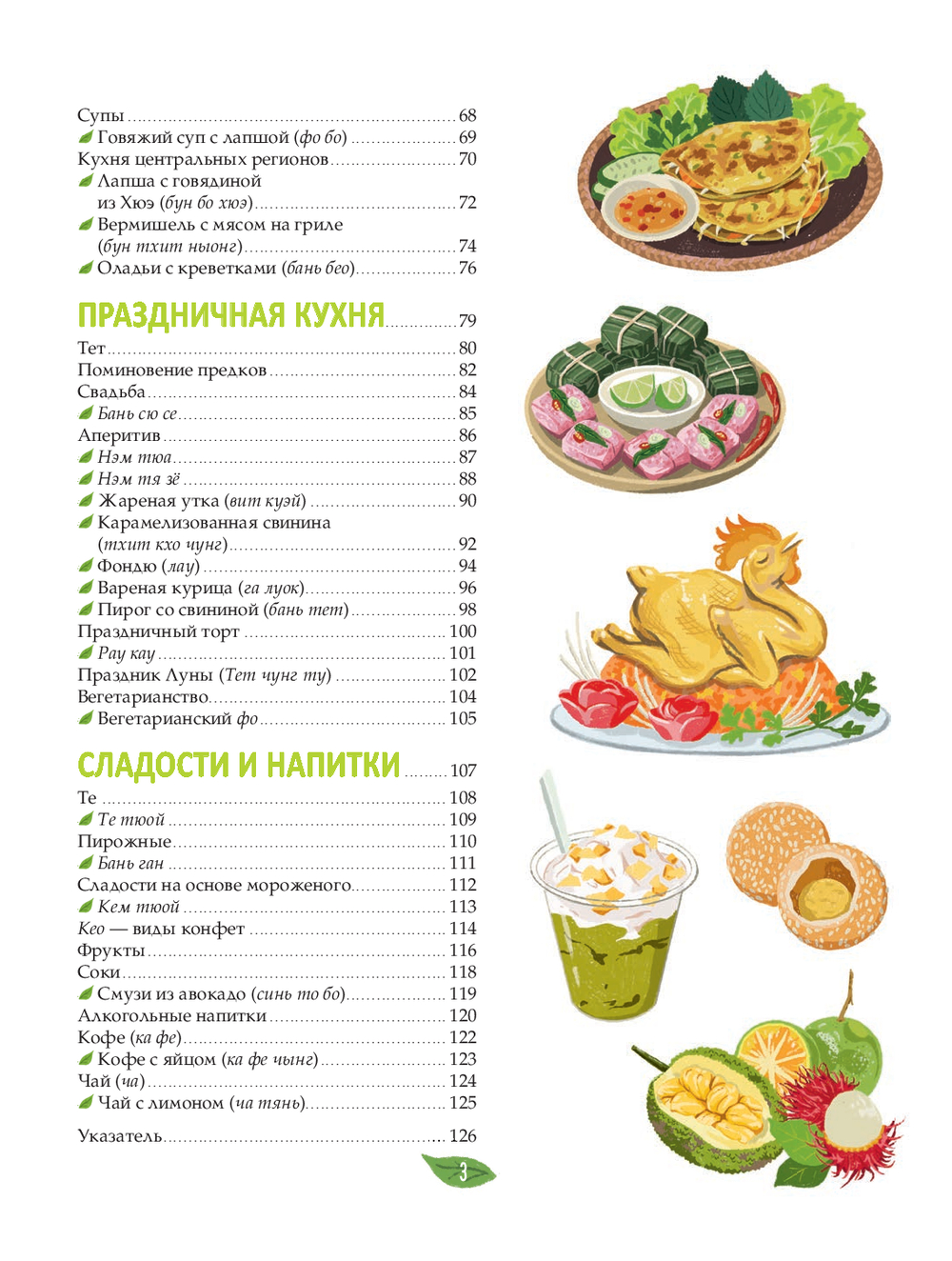 И не будем забывать про вкуснейшие рецепты: домашние соусы и приправы, вьетнамские блинчики и весенние рулеты, говяжий суп с лапшой, нэмы, жареная утка, карамелизованная свинина, флан с кокосовым молоком...