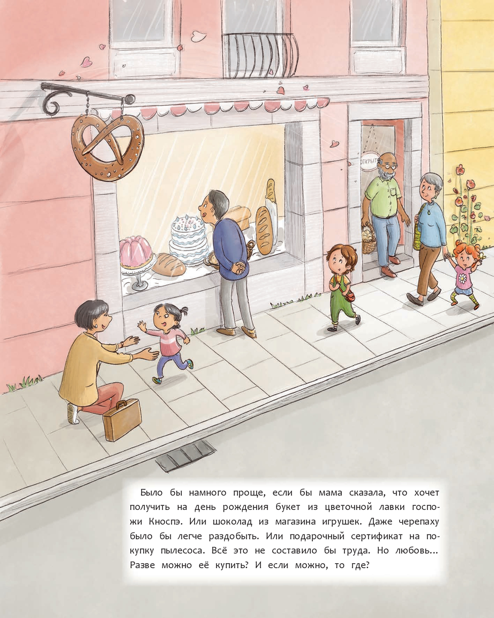 На день своего рождения мама попросила подарить много любви – и ничего больше. Но где её взять? В киоске не купишь, а нарисовать не получается. И вообще, как понять, какого цвета любовь? И почему мама говорит, что любви много даже в обычном бутерброде, а дедушка утверждает, что она спрятана в бабушкиных руках?