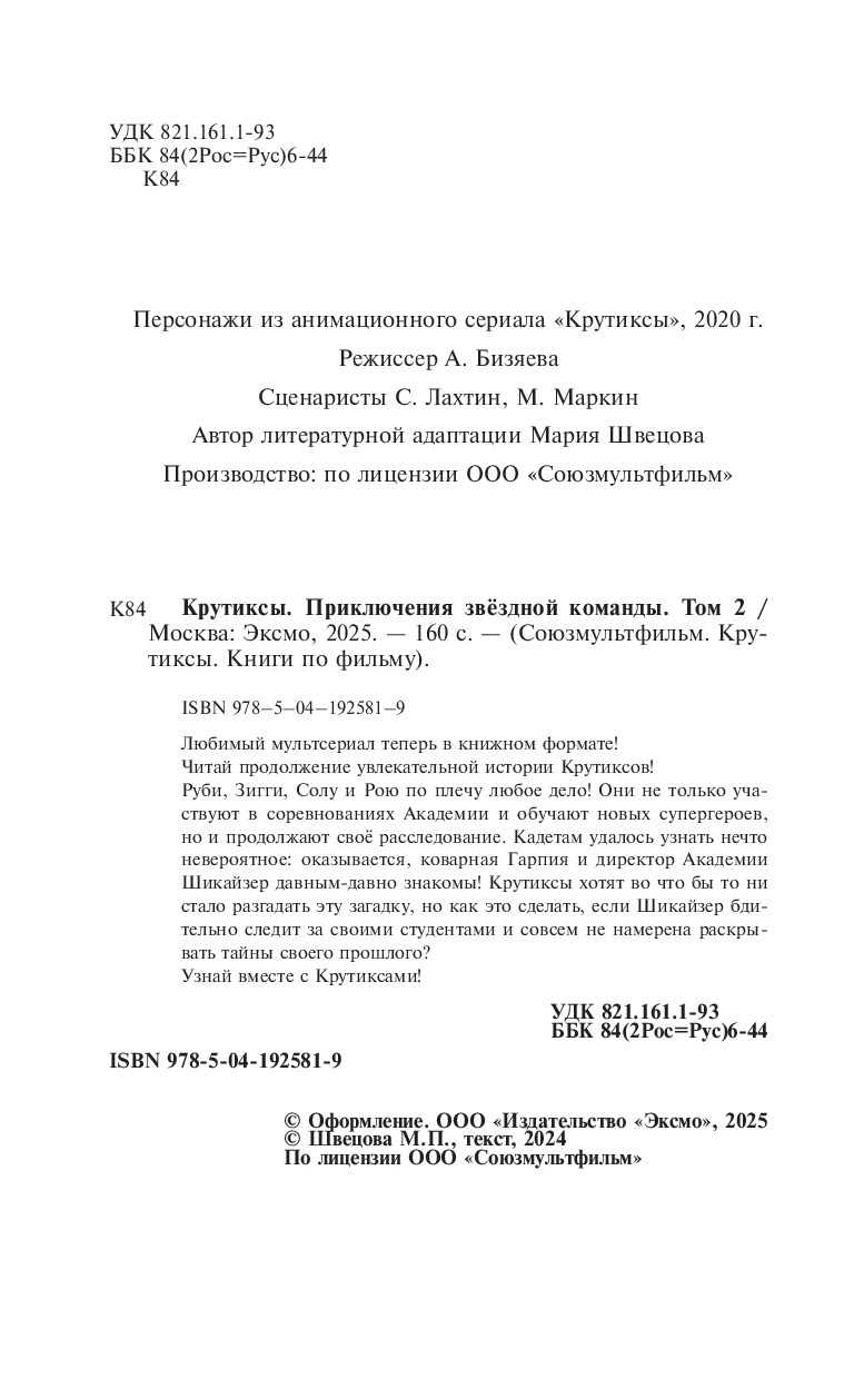 | Серия | Союзмультфильм. Крутиксы. Книги по фильму |