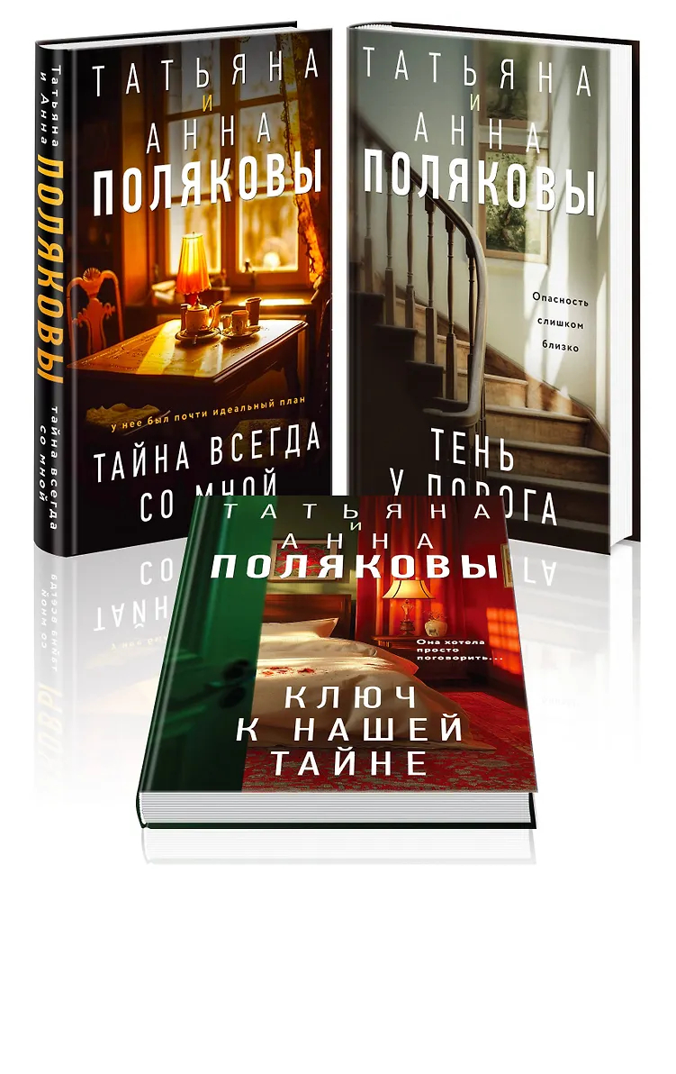 Комплект из 3-х книг Анны и Татьяны Поляковых: "Тайна всегда со мной", "Тень у порога", "Ключ к нашей тайне". Все книги в стильном оформлении, в твердой обложке и с белой офсетной бумагой. Порадует любителей современного авантюрного детектива.